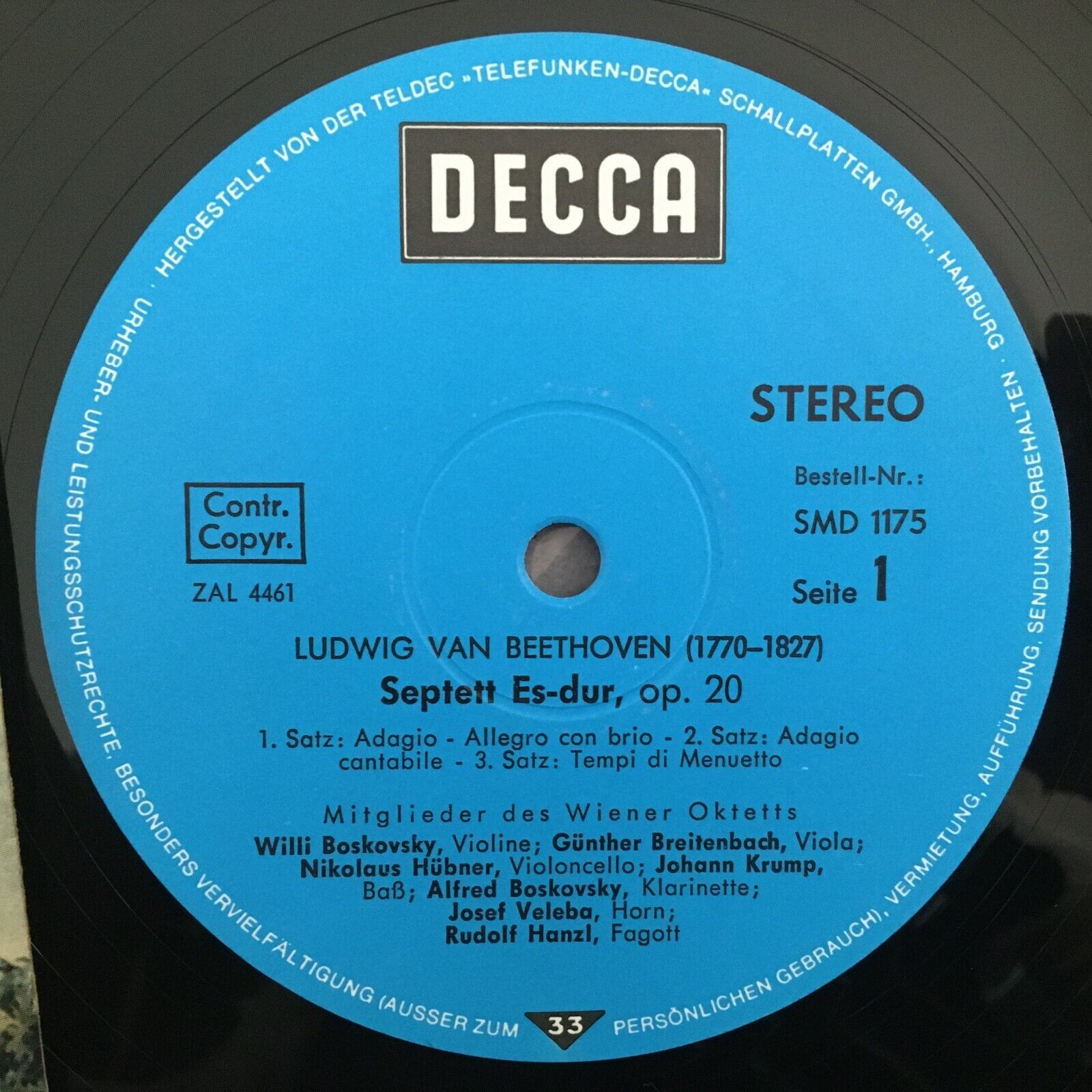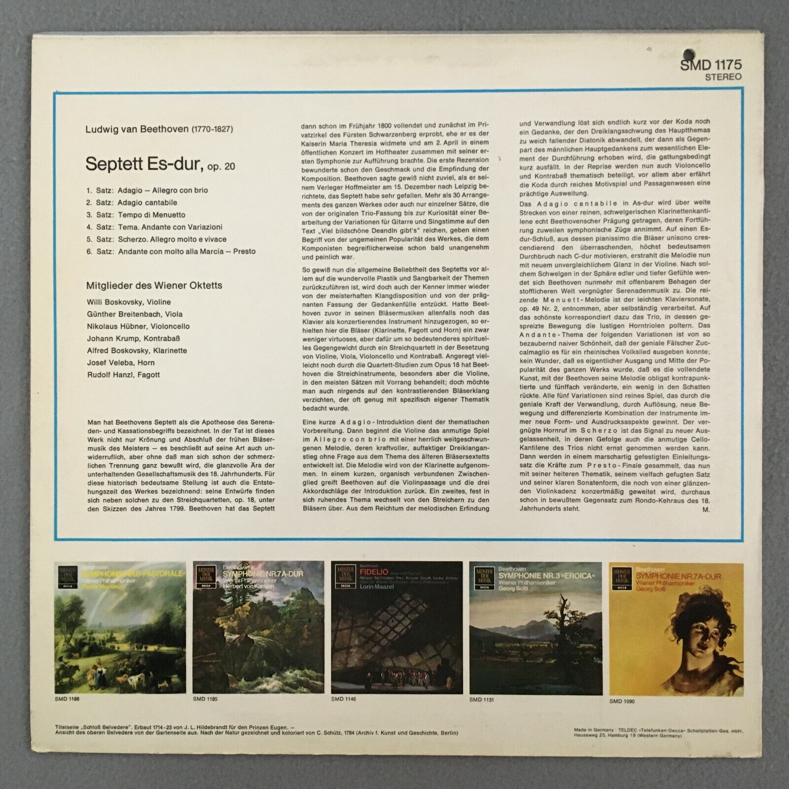 Z656 Beethoven Septet Members Vienna Octet Boskovsky DECCA SMD 1175 Stereo