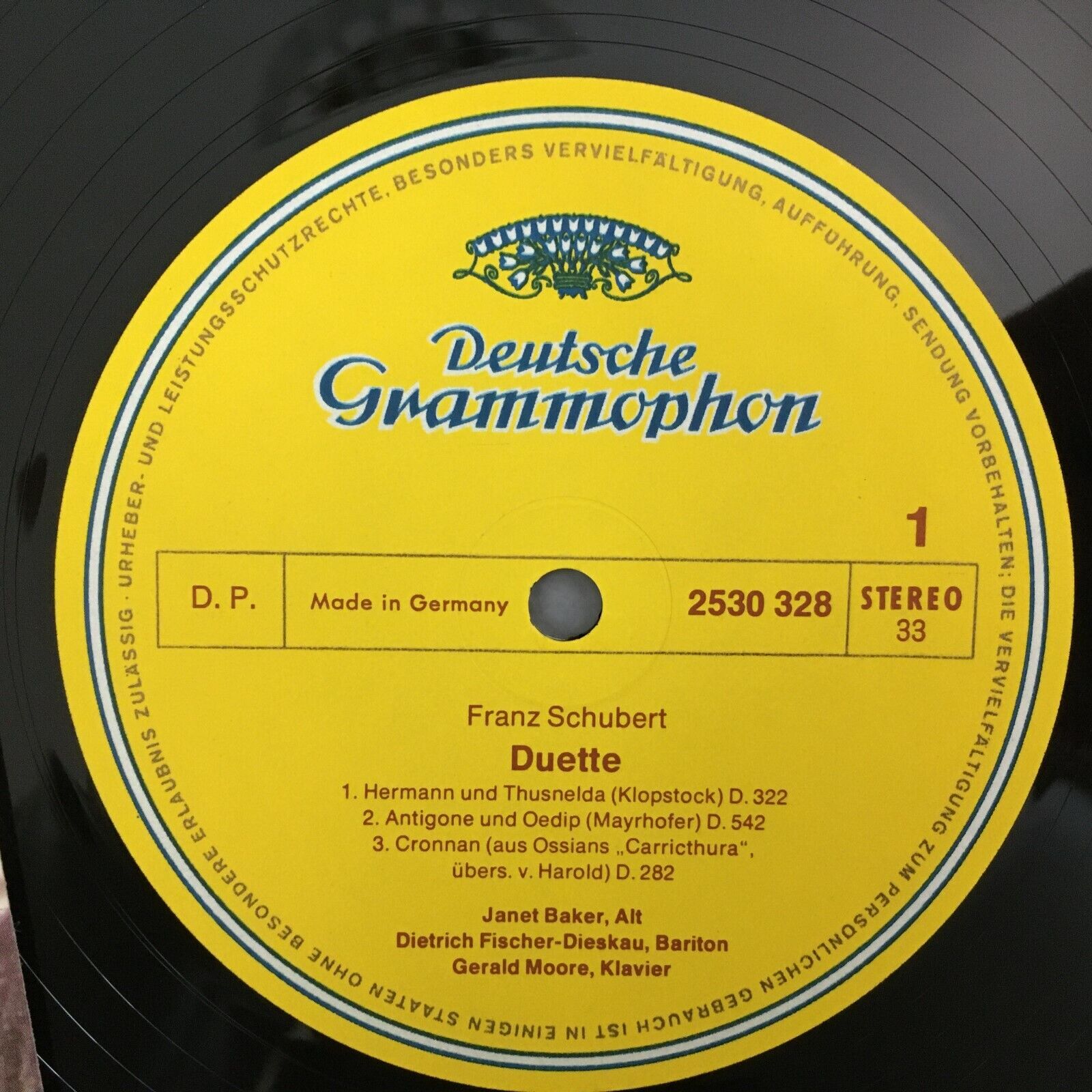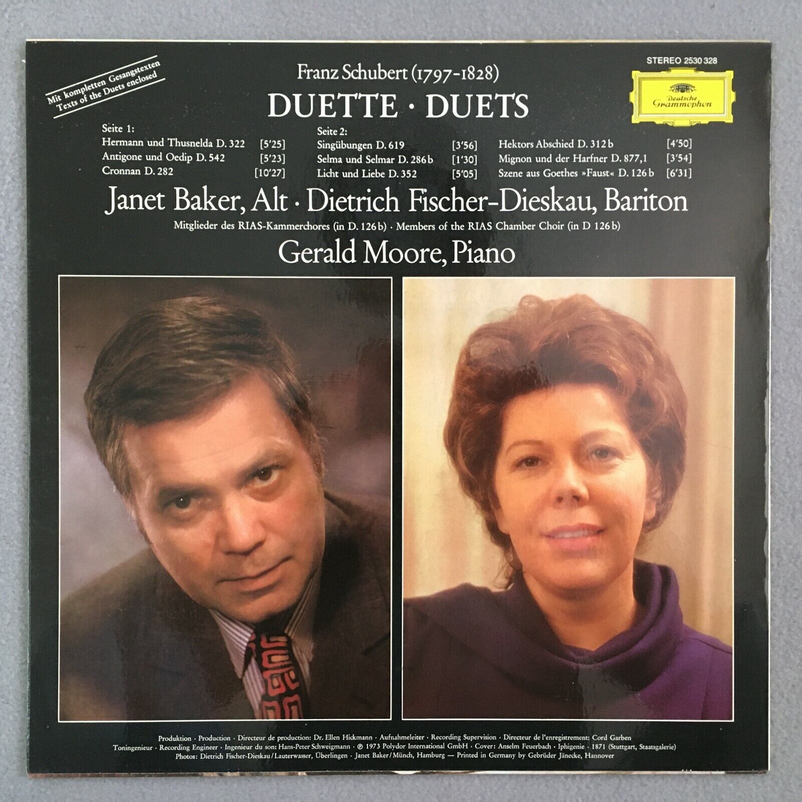 Z394 Schubert Duets Fischer-Dieskau Baker Moore / Piano DGG 2530 328 Stereo