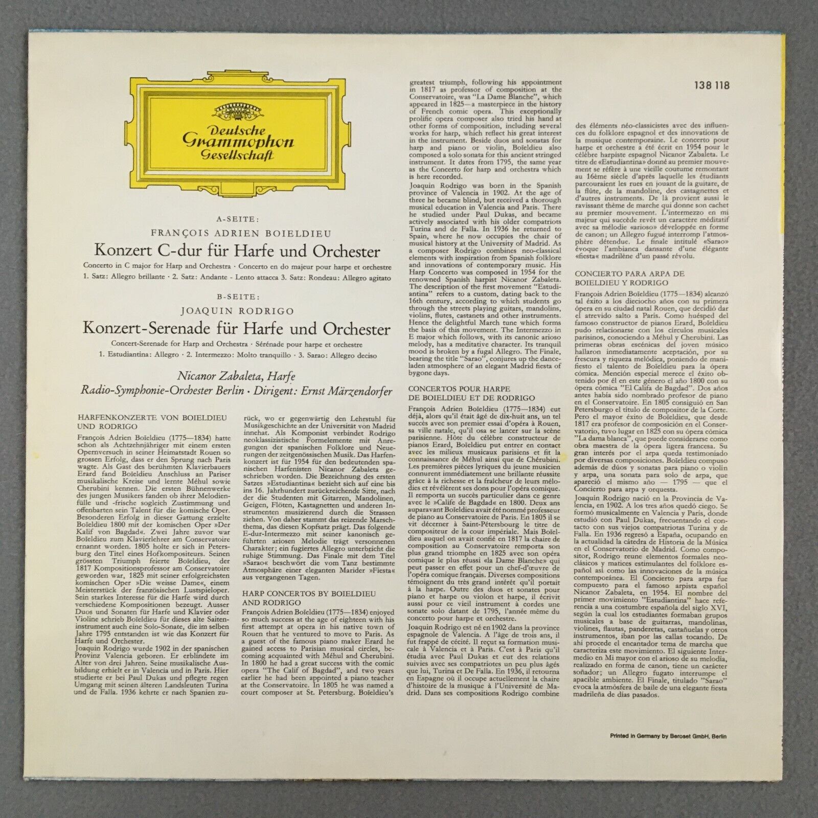 Z675 Boieldieu Harp Concerto Serenade Zabaleta Märzendorfer DGG 138 118 Stereo