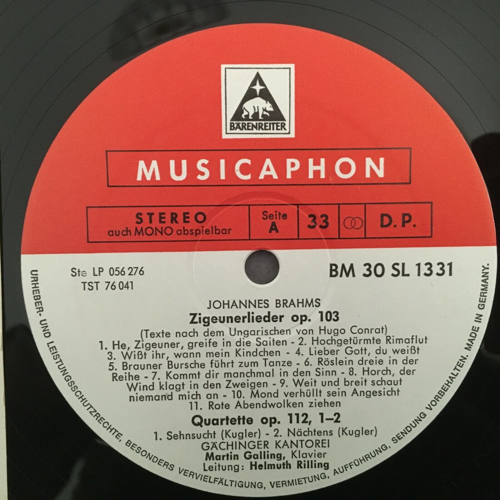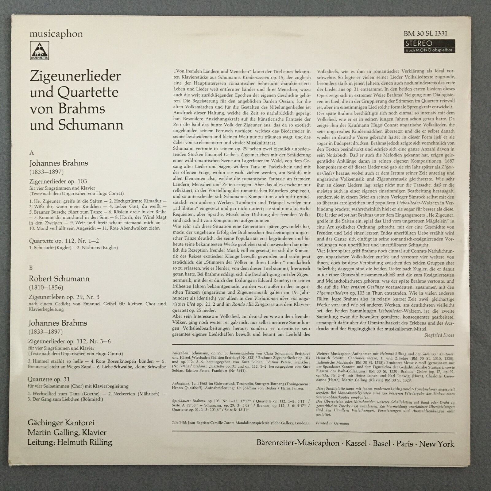 Z643 Zigeunerlieder Brahms Schumann Rilling Musicaphon BM 30 SL 1331 Stereo