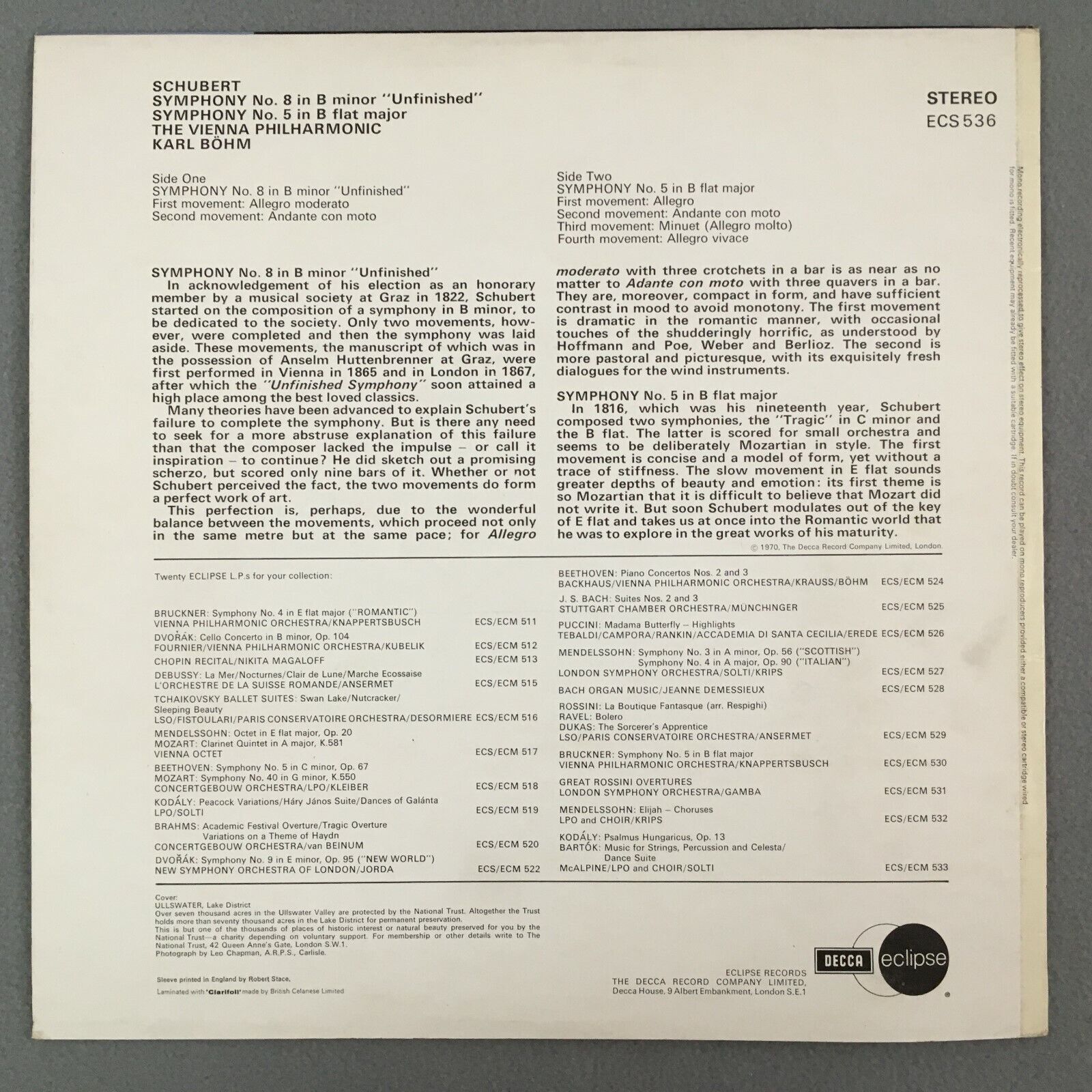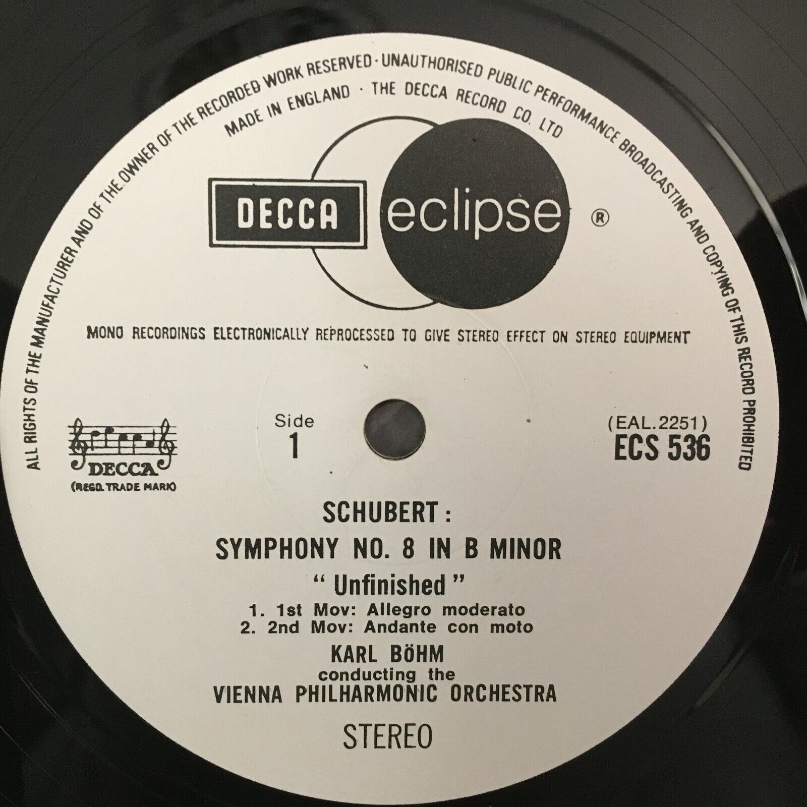Z542 Schubert Symphony No.8 Bohm VPO DECCA ECS 536 Stereo