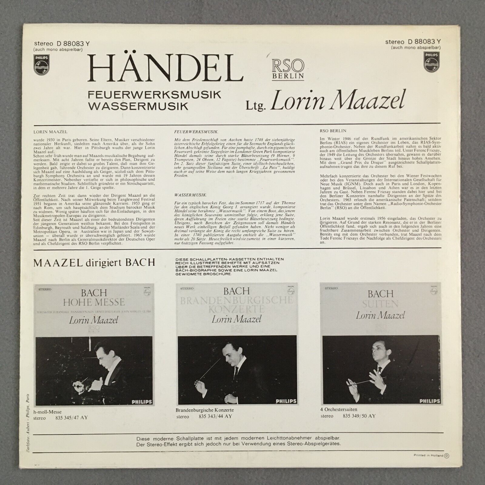 Z541 Handel Watermusic Fireworks Music Maazel Philips D 88083 Y Stereo