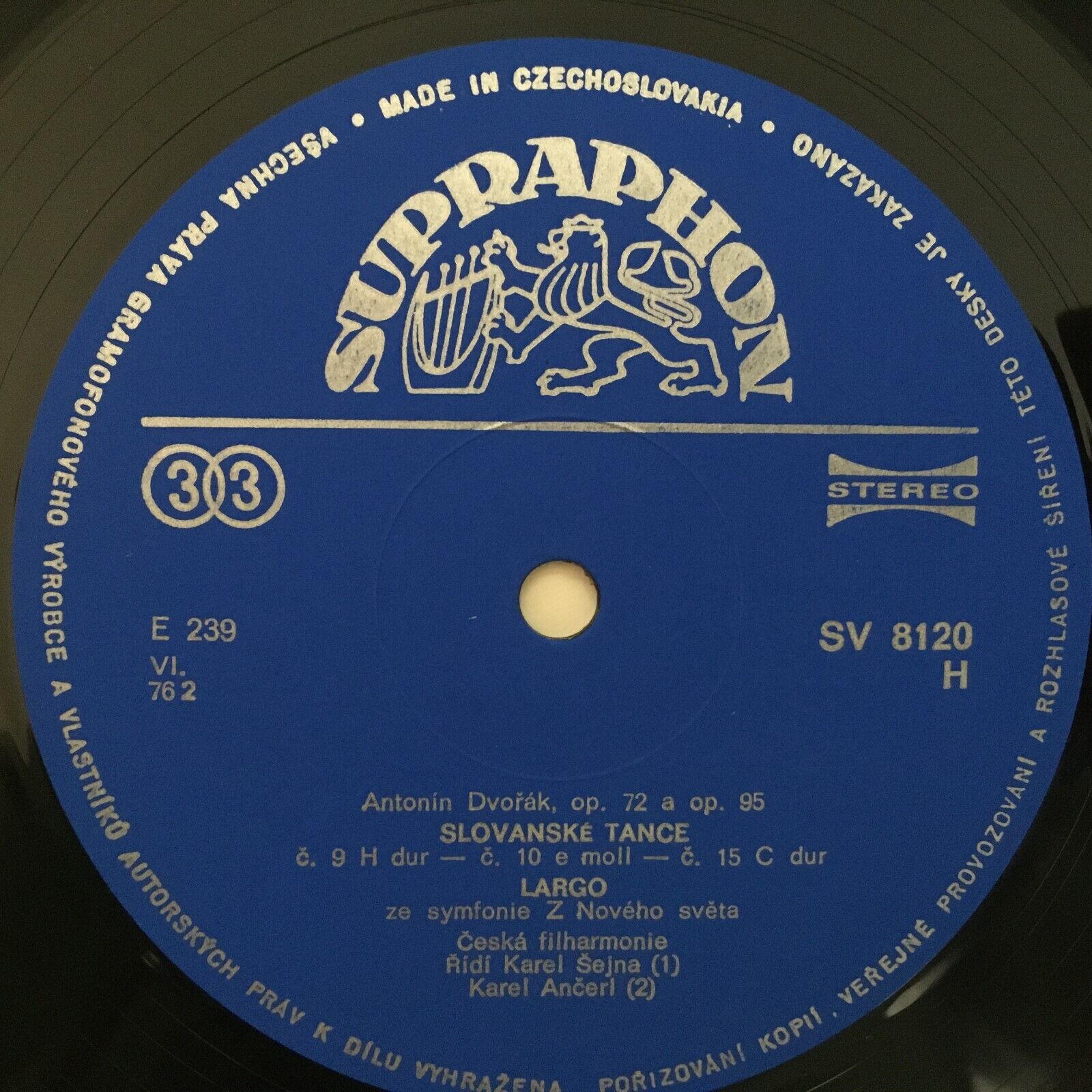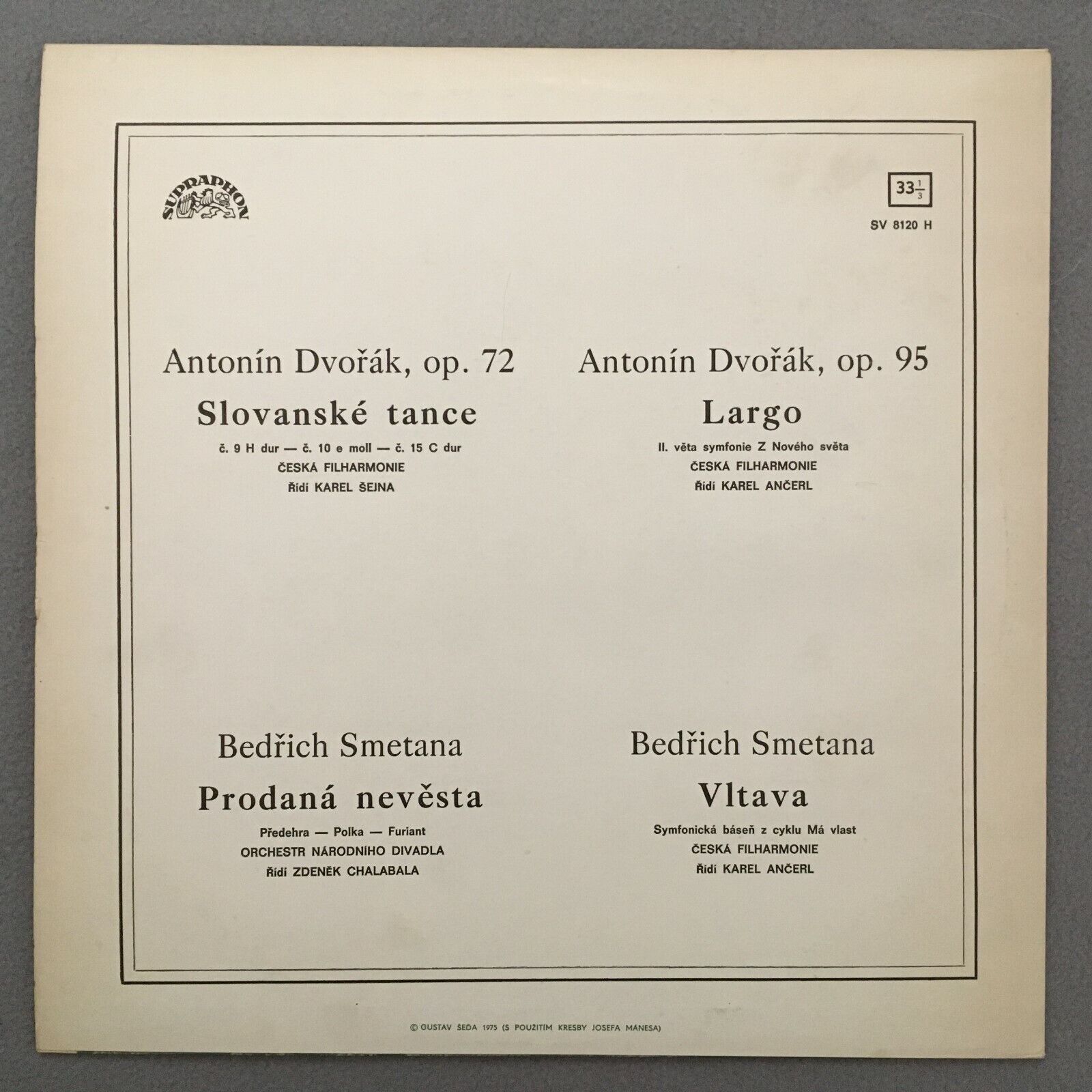 Z713 Dvorak Largo Smetana Polka Ma Vlast Ancerl Supraphon SV 8120 H