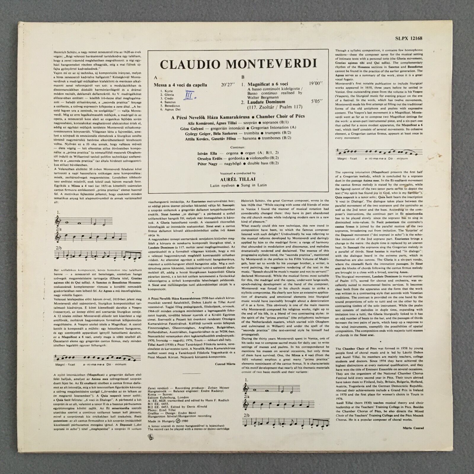 Z522 Monteverdi Mass Magnificat Nagy Kovacs Tillai Hungaroton SLPX 12168 Stereo