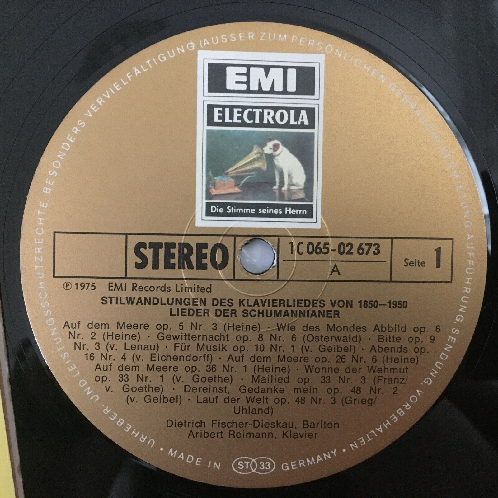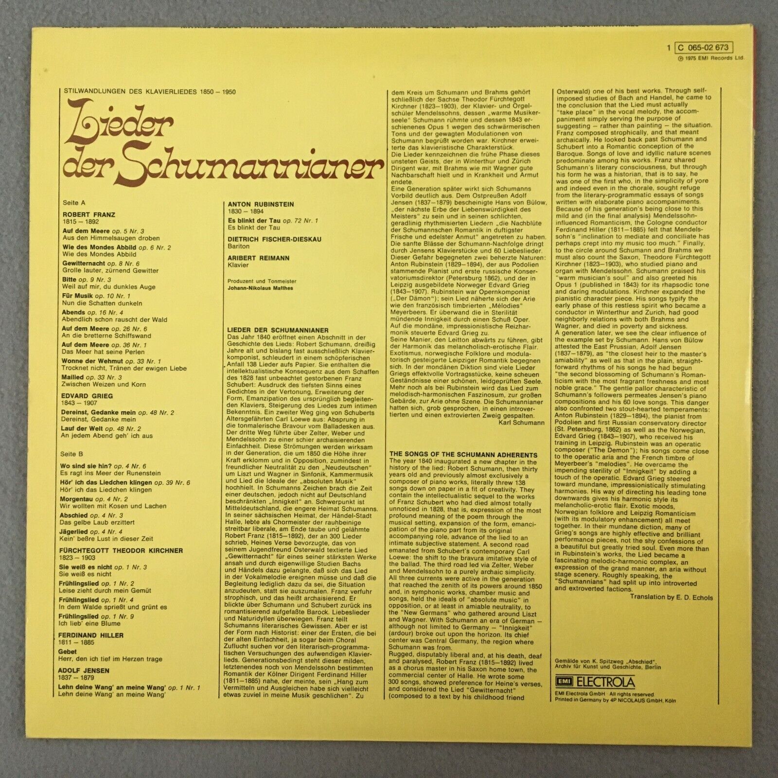 R782 Franz Grieg Songs Fischer-Dieskau Reimann Piano EMI 1 C 065-02 673 Stereo