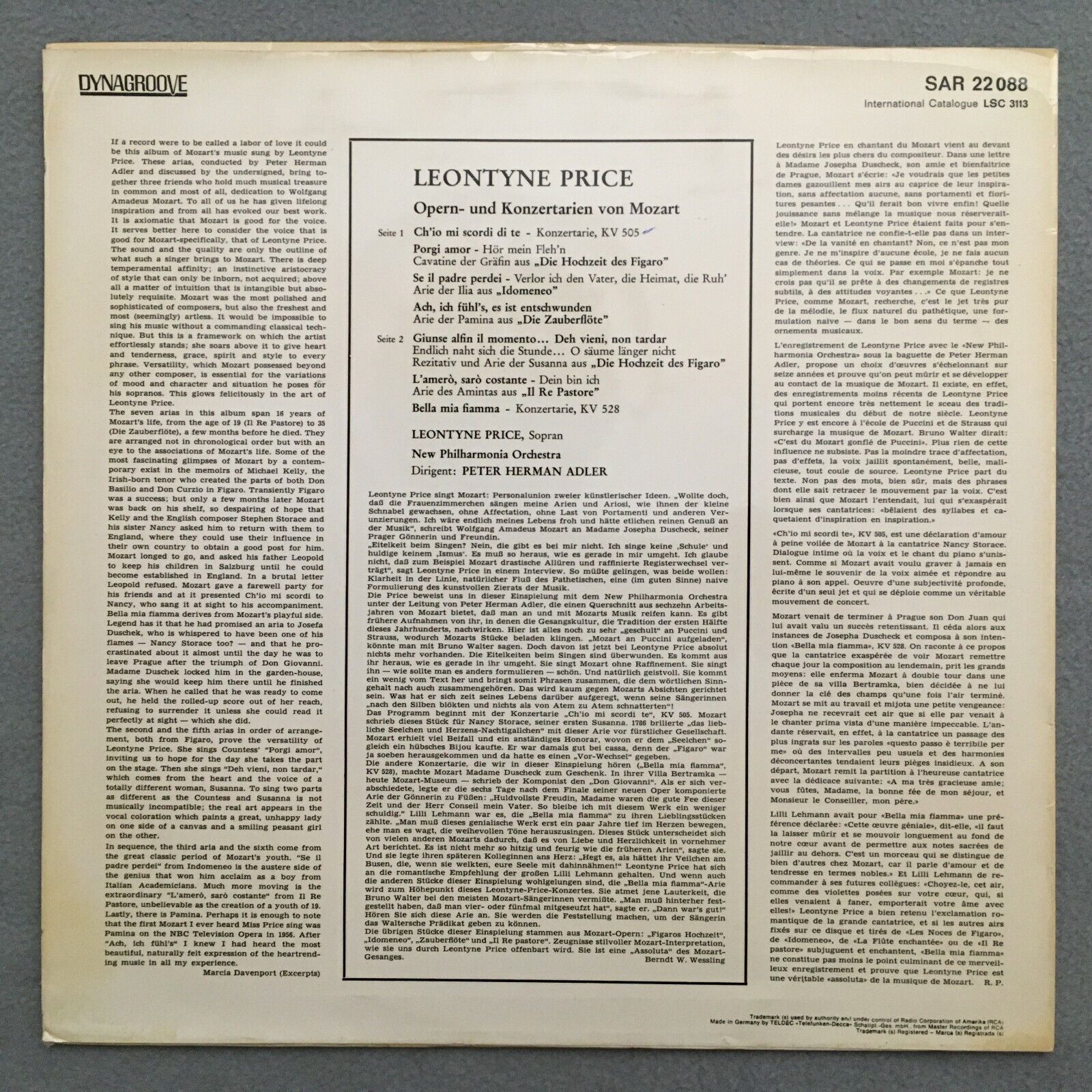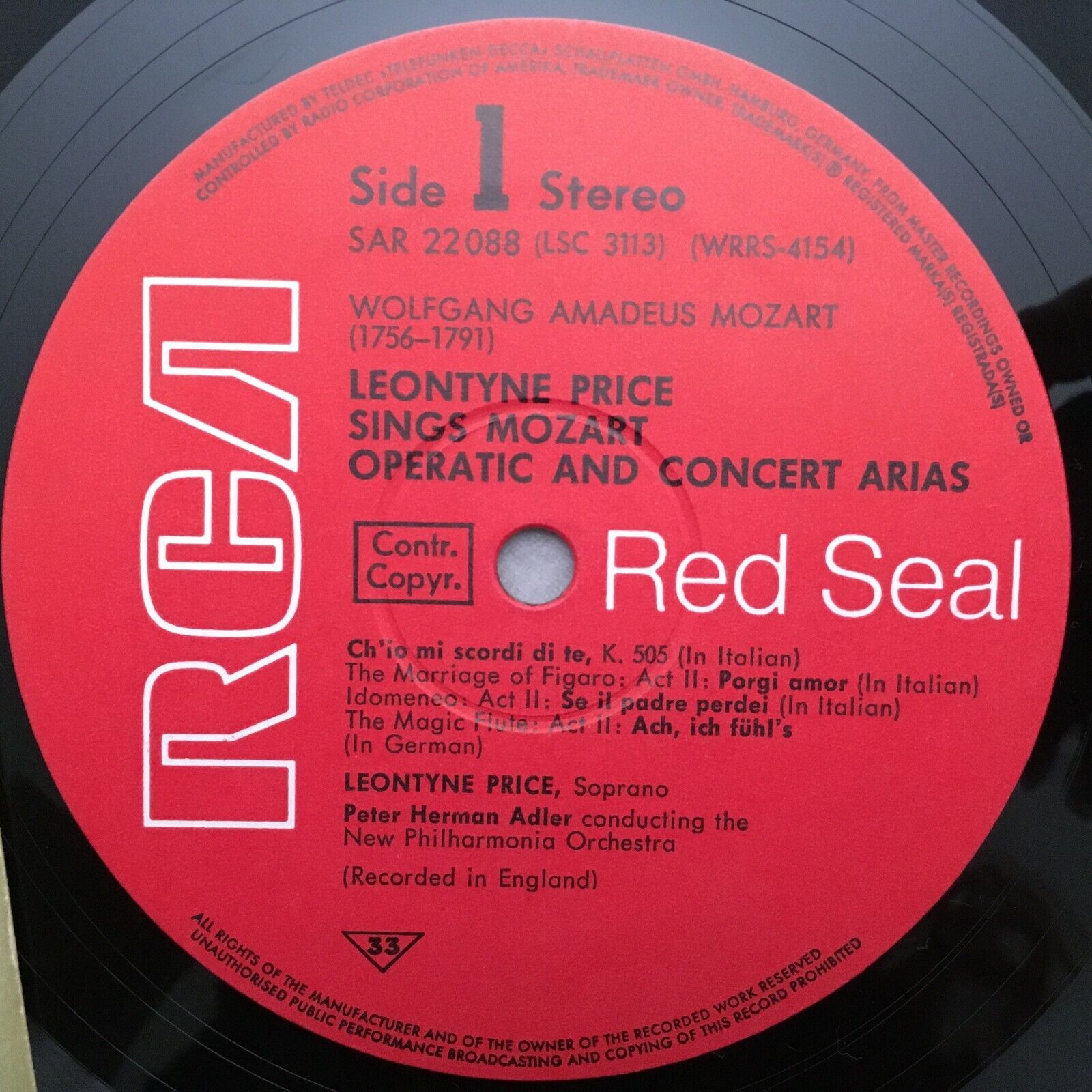 R837 Mozart Opera & Concert Arias Price Adler RCA SAR 22 088 Stereo