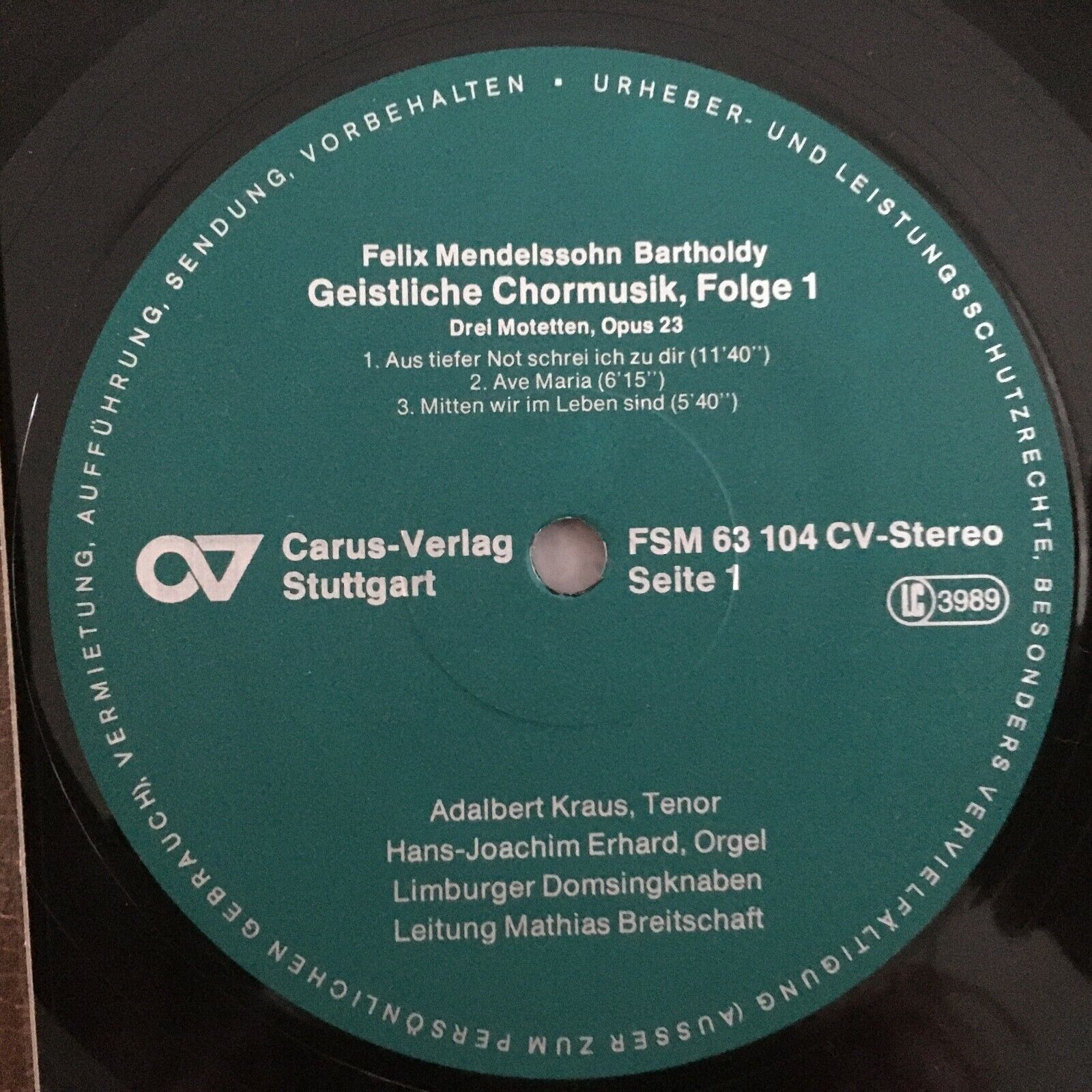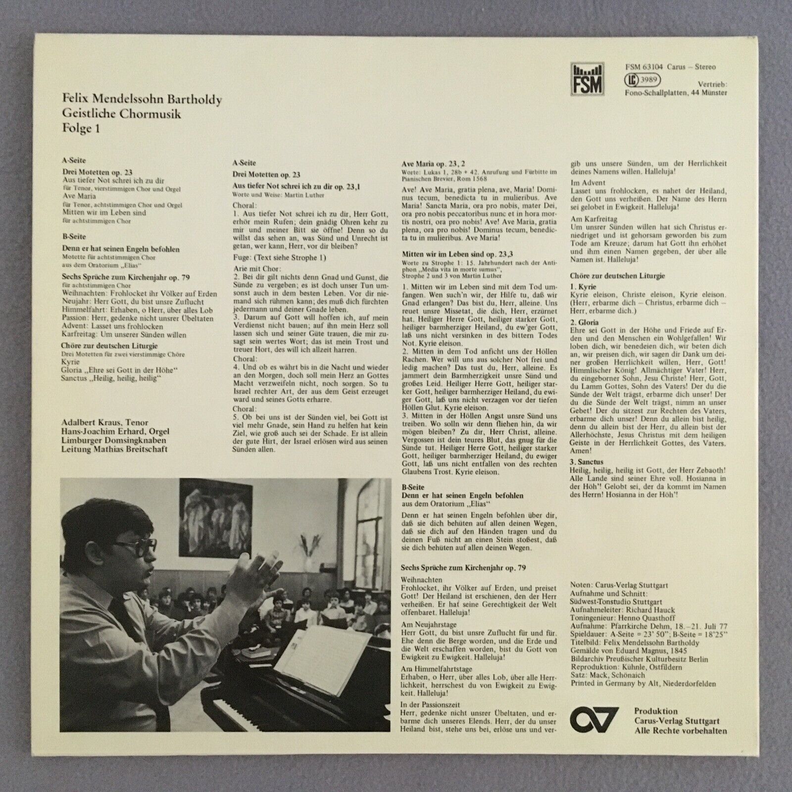 R850 Mendelssohn Sacred Choral Music Kraus Erhard Breitschaft FSM 63 104 Stereo