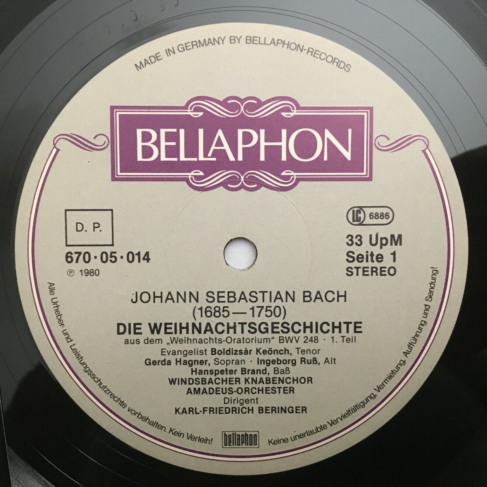 J033 Bach Christmas Story Beringer Boy´s Choir Windsbach Bellaphon 670 05 014 St