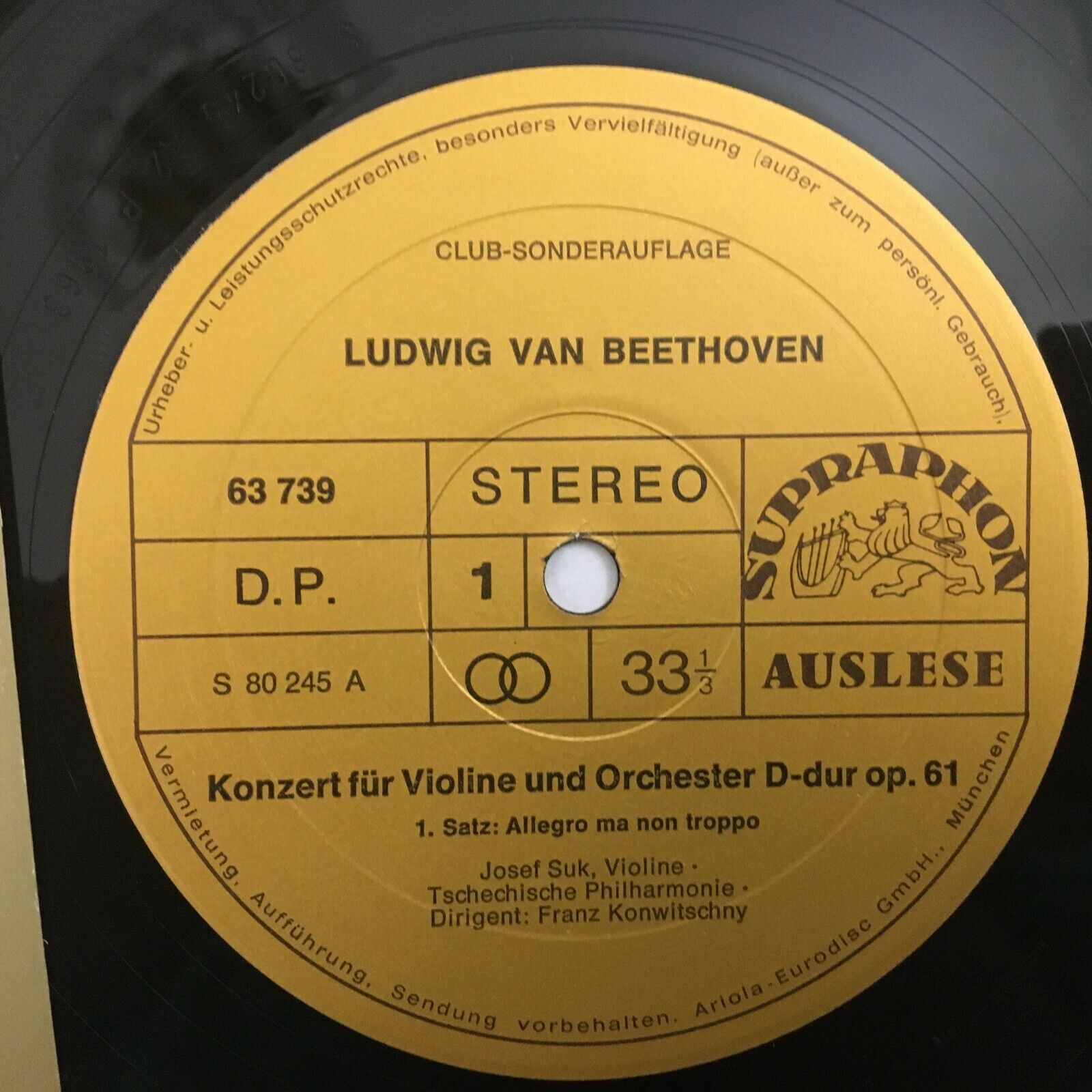 V327 Beethoven Violin Concerto Suk Konwitschny Supraphon 63 739 Stereo