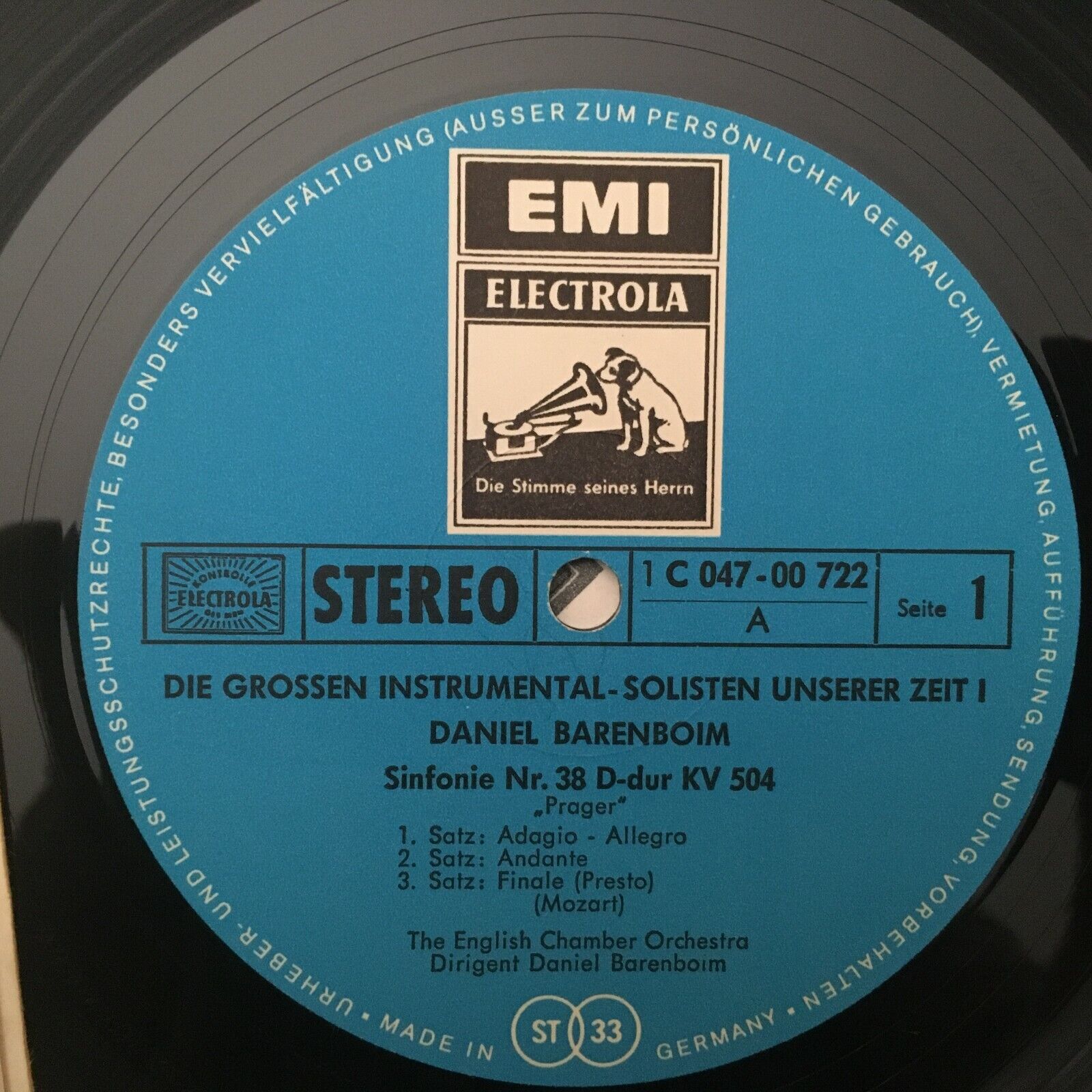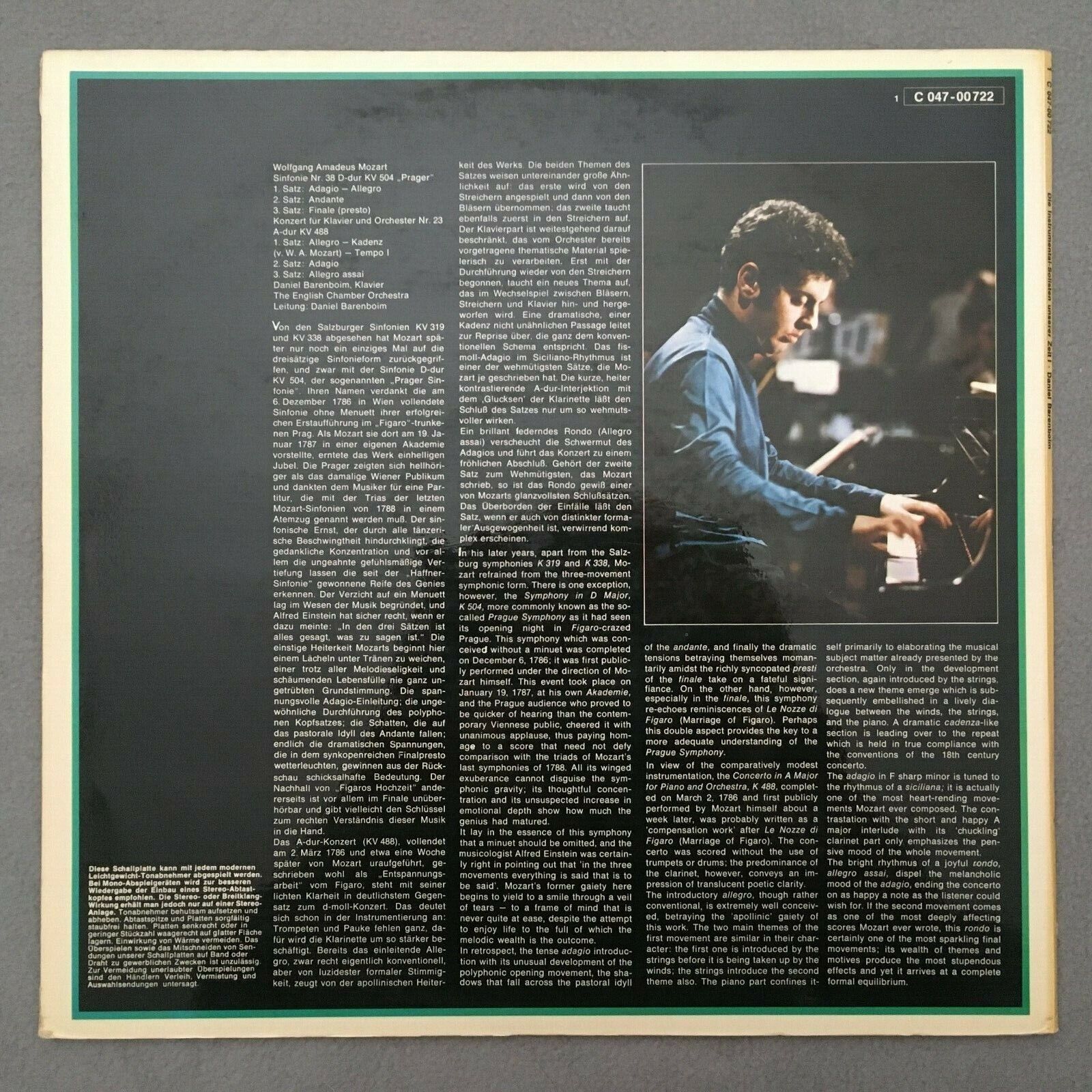 V419 Mozart Symphony No.38 Piano Concerto Barenboim EMI 1 C 047-00 722 Stereo