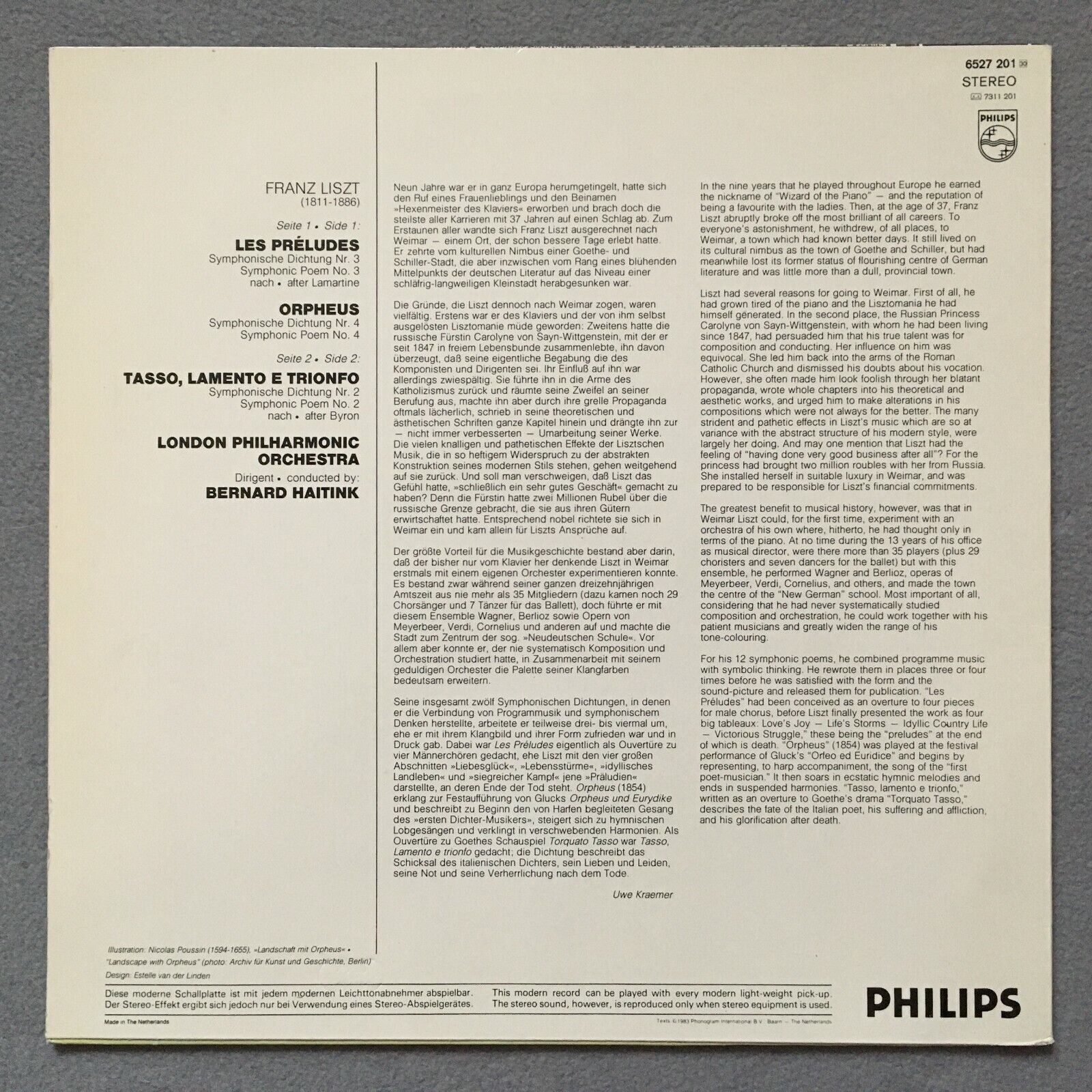 V424 Liszt The Preludes Orpheus Tasso Haitink LPO Philips 6527 201 Stereo