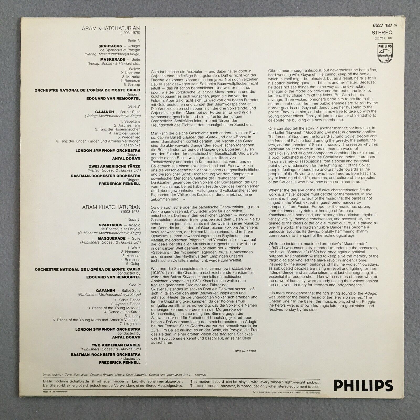 V434 Khatchaturian Spartacus Suites Remoortel Dorati Philips 6527 187 Stereo