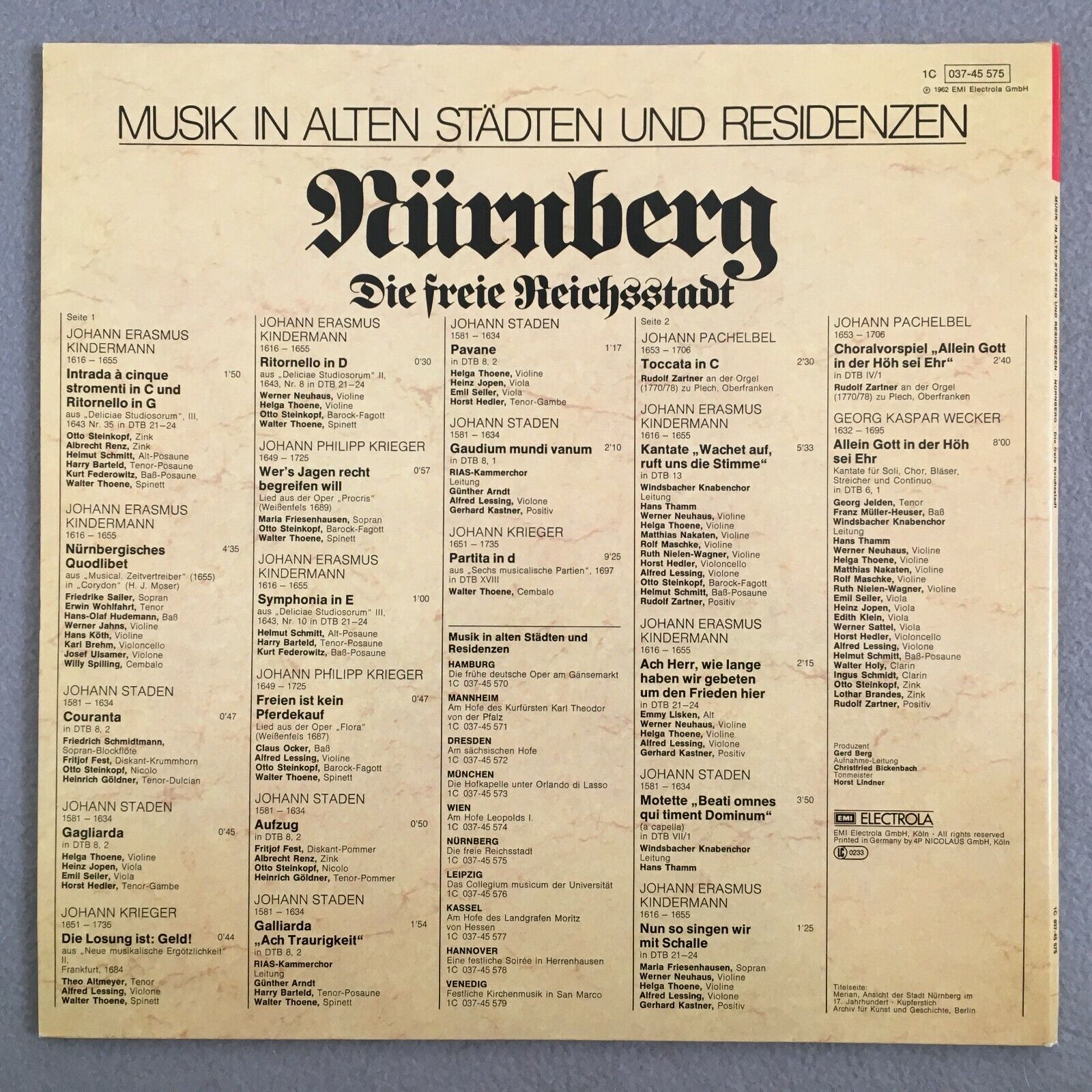 V441 Music from Nürnberg Krieger Pachelbel Kindermann EMI 1C 037-45 575 Stereo