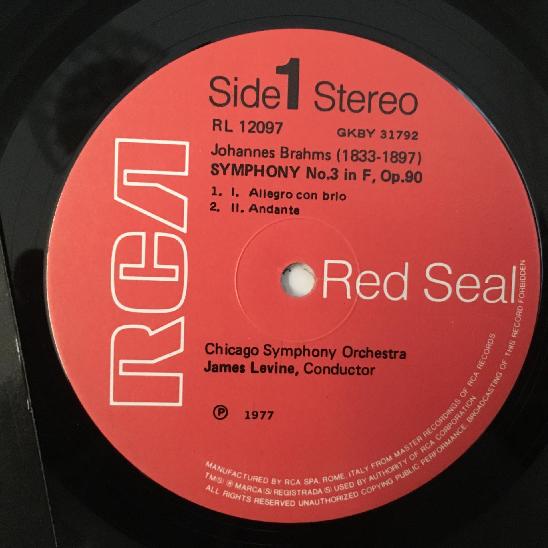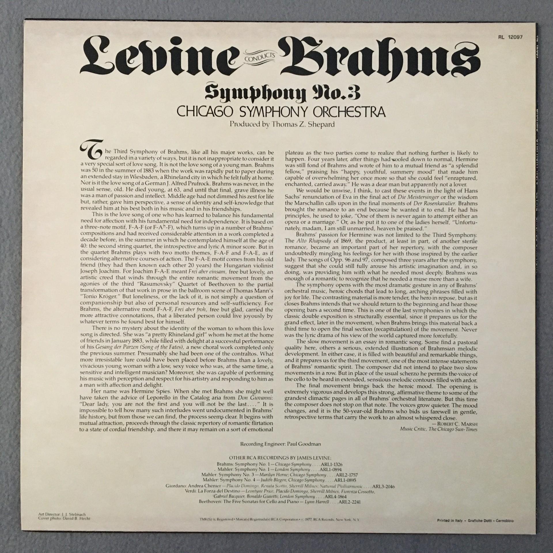 L796 Brahms Symphony No.3 Levine RCA RL 12097 Stereo