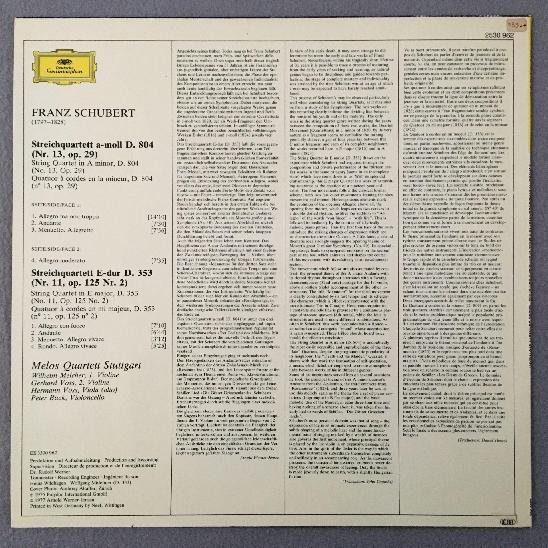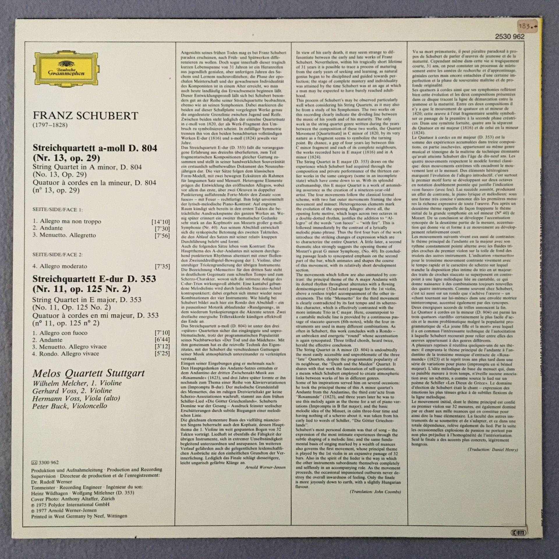 L800 Schubert String Quartets Melos Quartett Stuttgart DGG 2530 962 Stereo