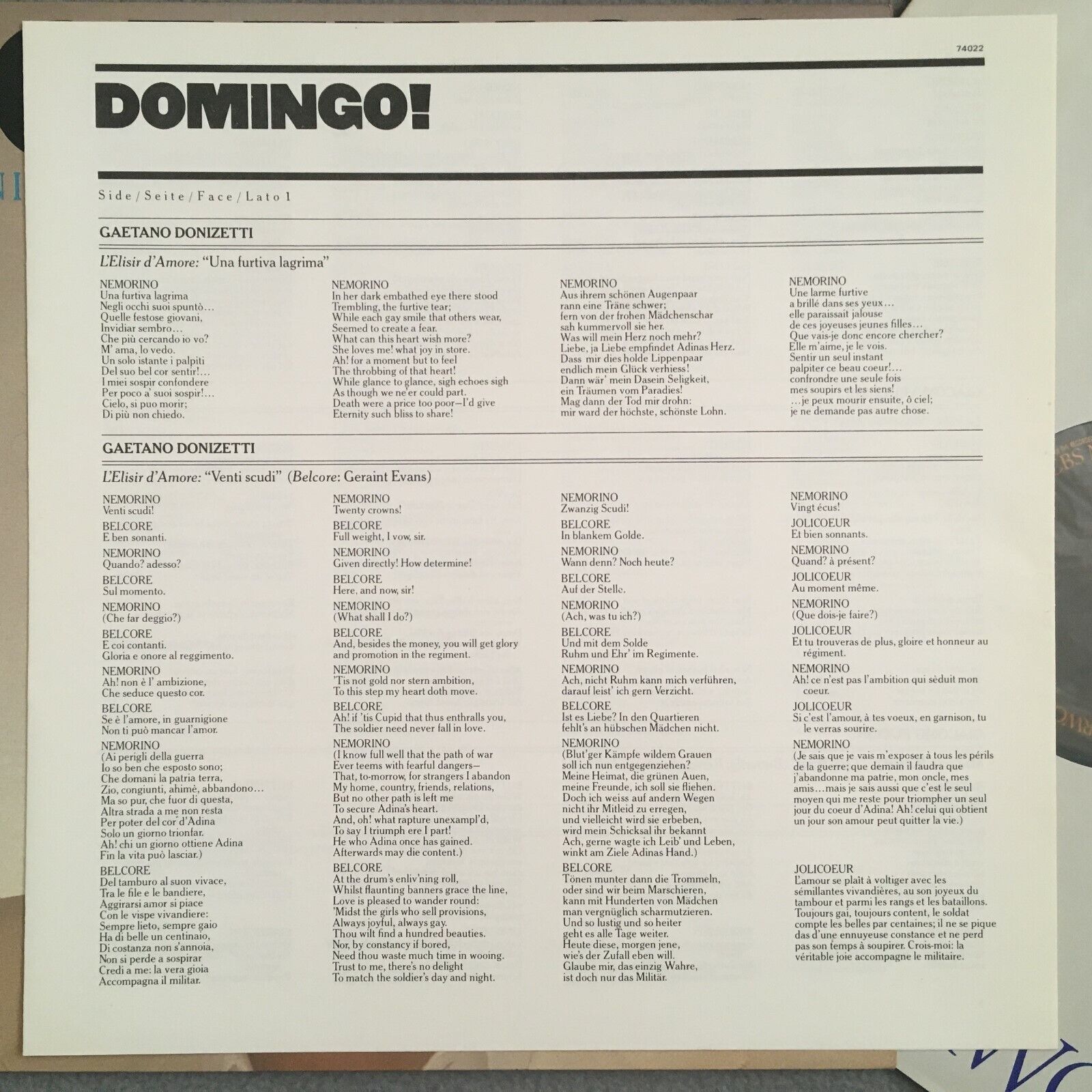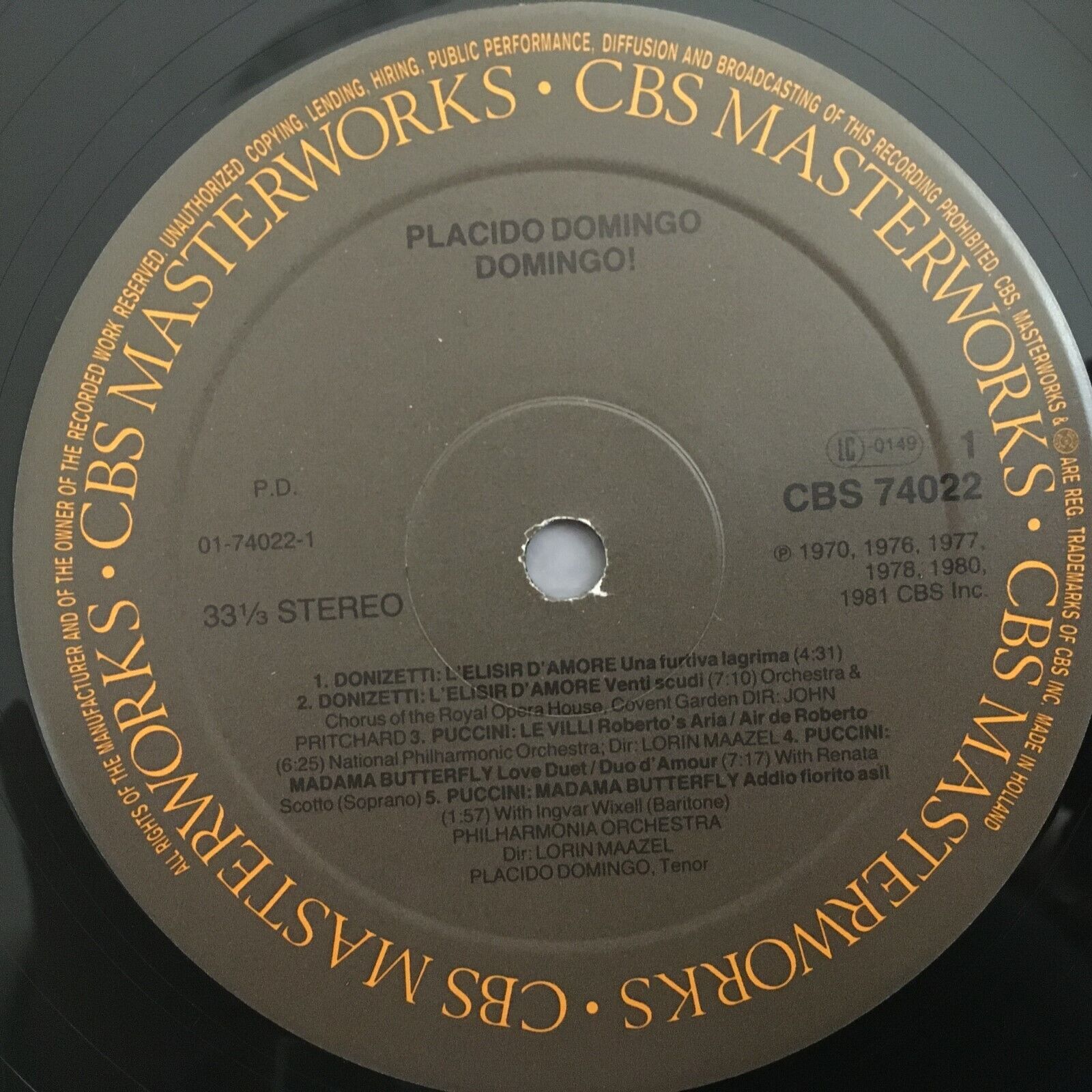 V464 Domingo Arias Puccini Verdi Donizetti Pritchard Maazel CBS 74022 Stereo