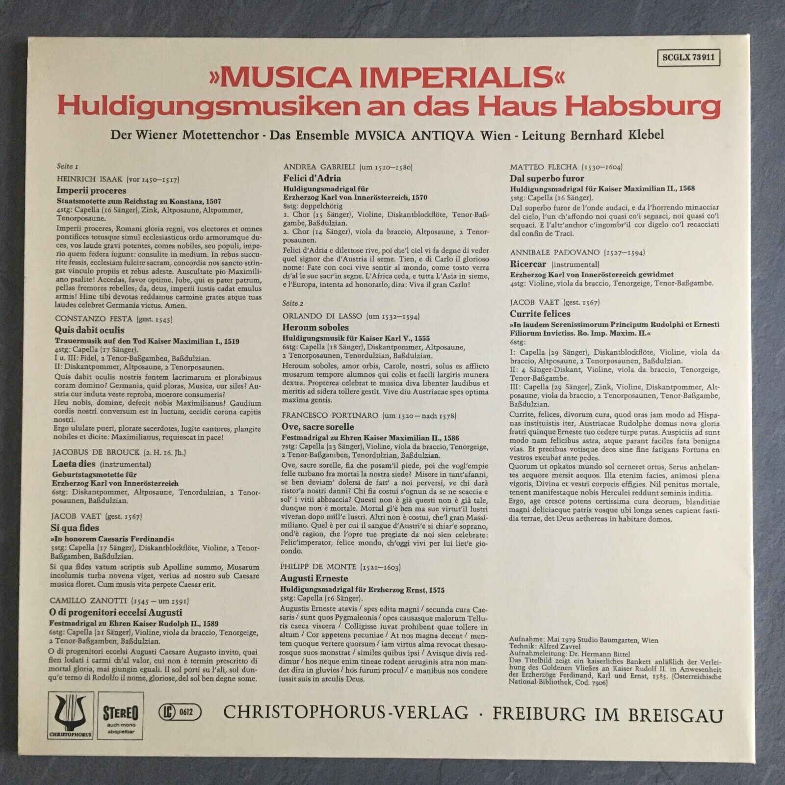 V474 Music on the House of Habsburg Klebel Christophorus SCGLX 73 911 Stereo
