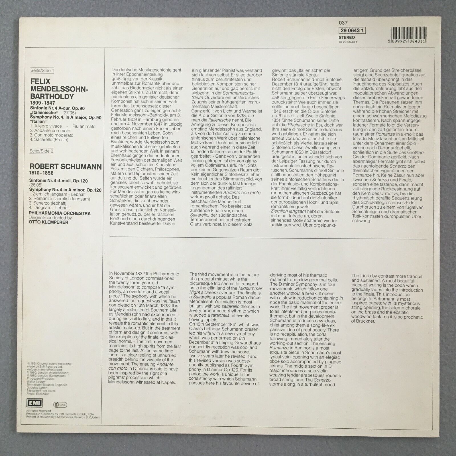 V487 Mendelssohn Schumann Symphonies Klemperer LPO EMI 037 29 0643 1 Stereo