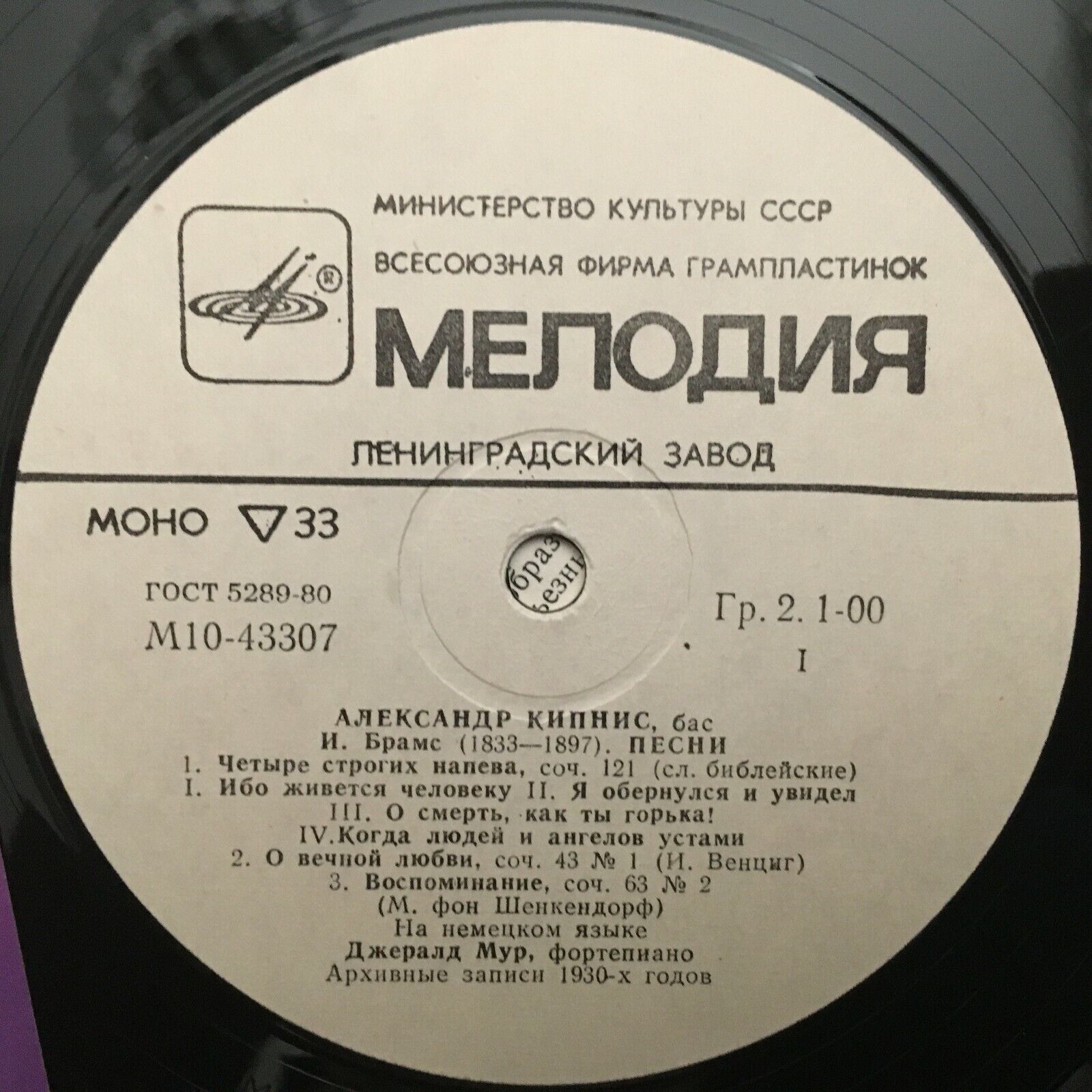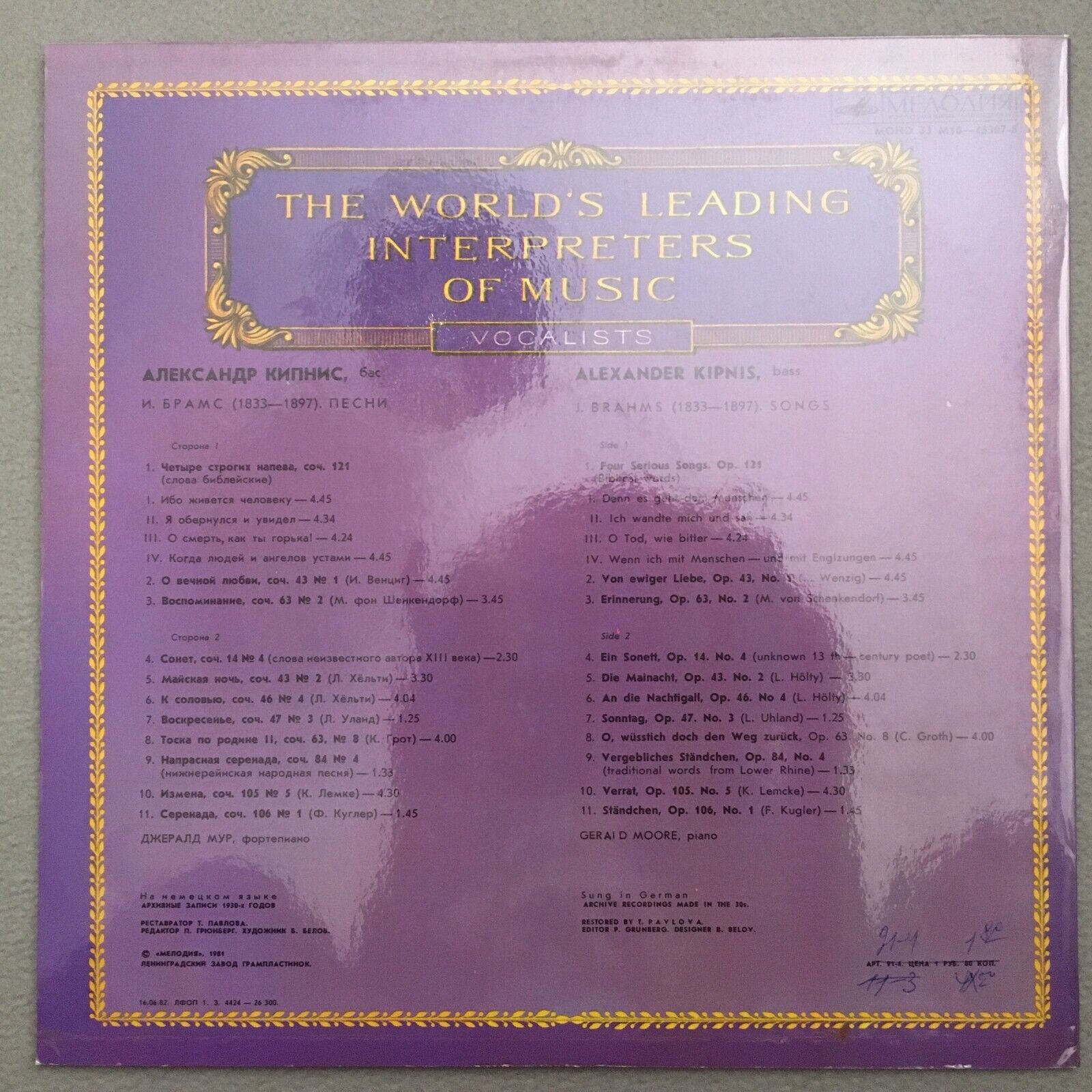 V528 Brahms Songs Kipnis Bass Moore Piano Melodiya M10-43307-8