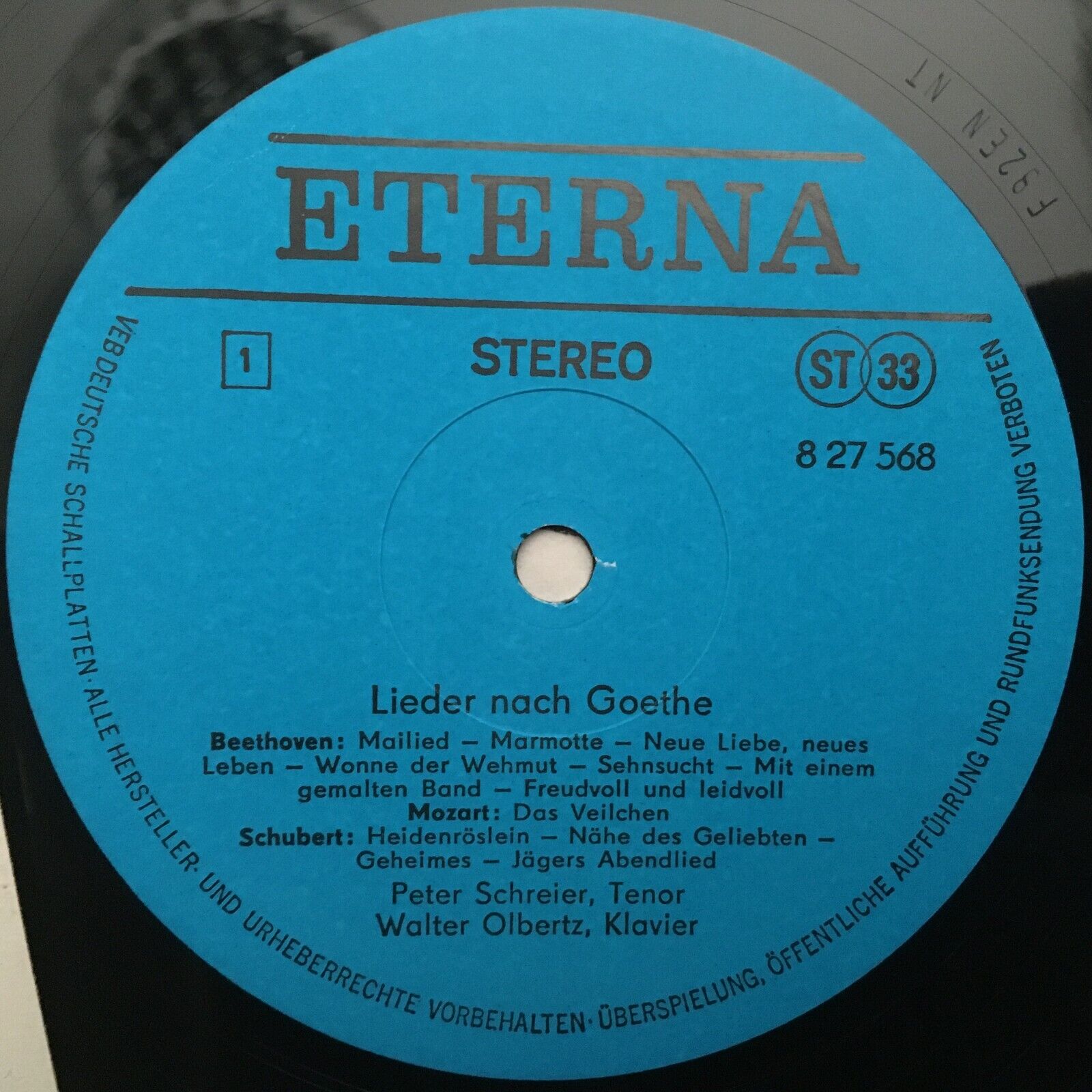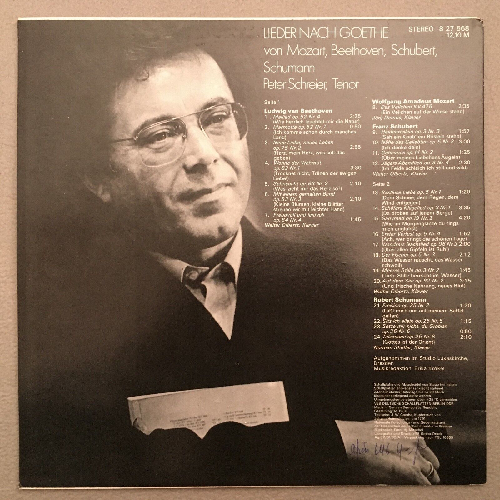 V529 Schreier sings Songs of Goethe Mozart Beethoven Eterna 8 27 568 Stereo