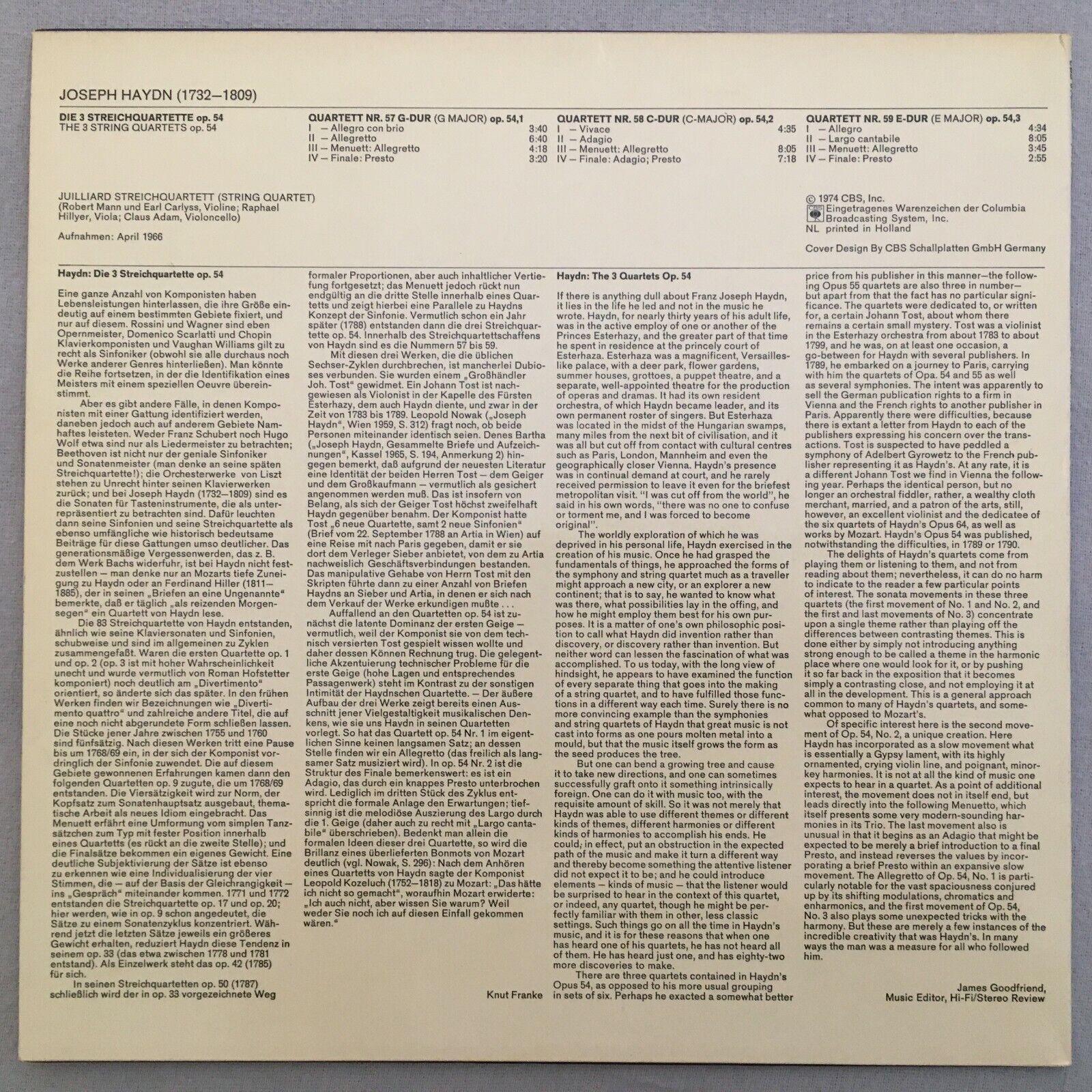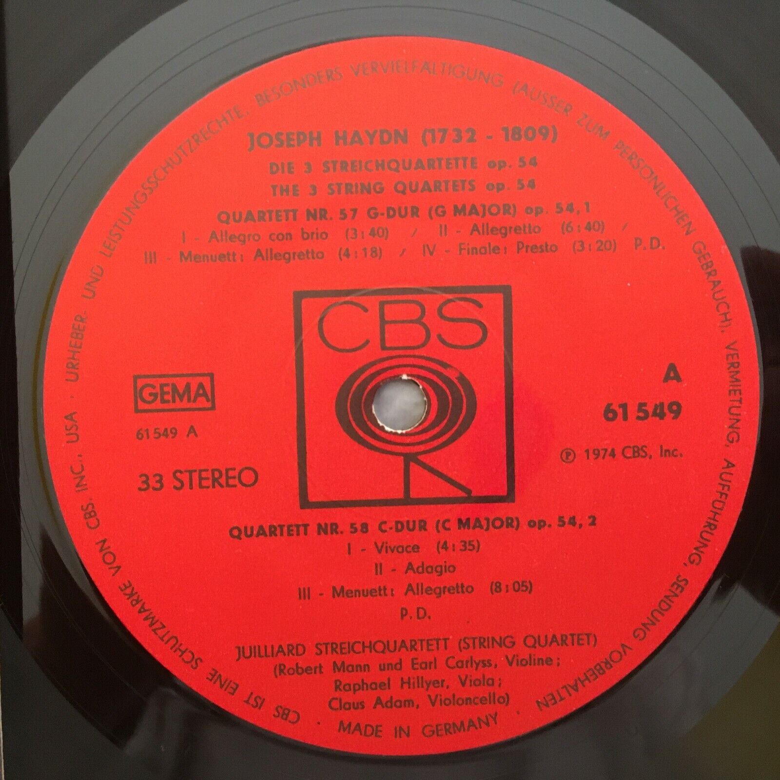 V531 Haydn The 3 String Quartets Juilliard Quartet CBS 61 549 Stereo