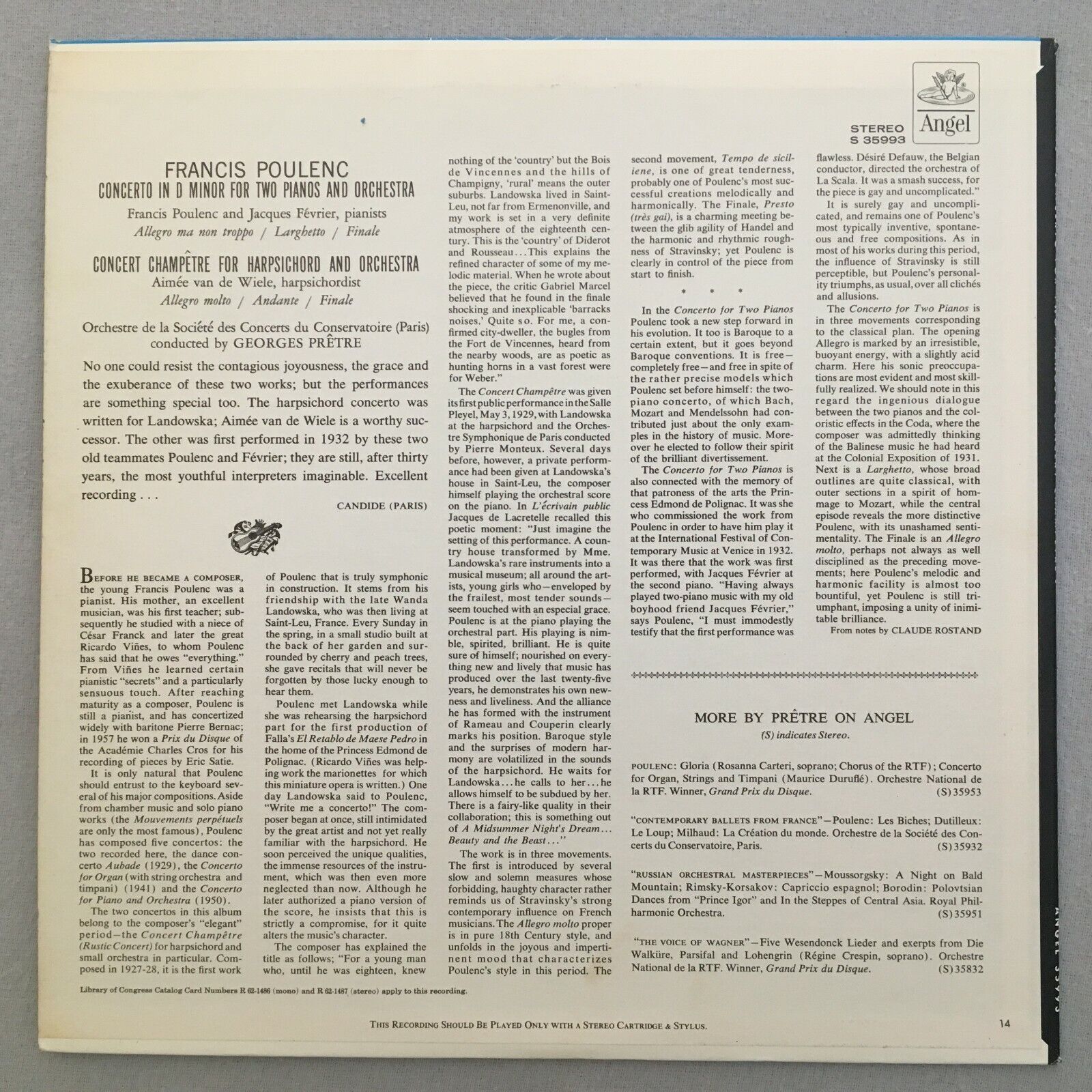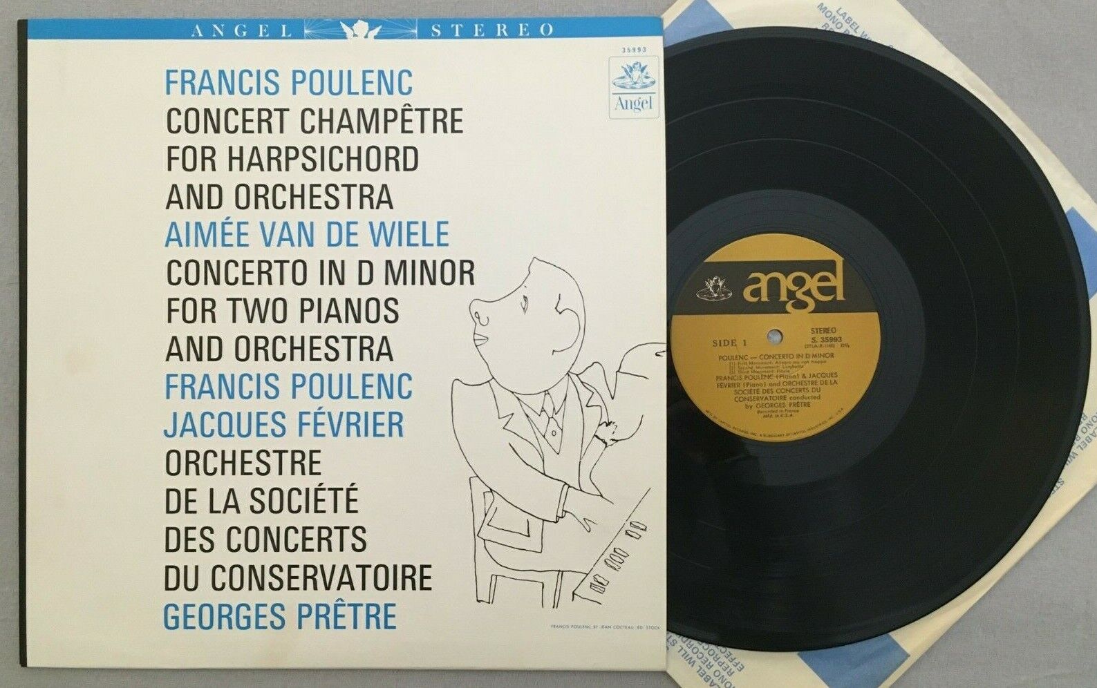 V533 Poulenc Piano Concerto Fevrier de Wiele Cembalo Pretre Angel S 35993 Stereo