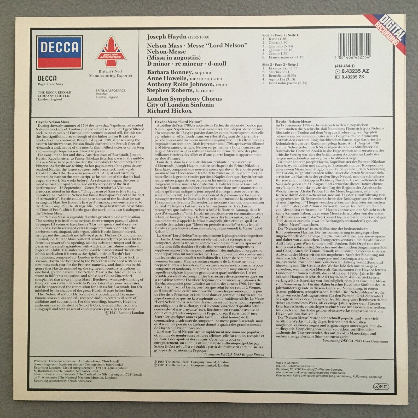 V546 Haydn Nelson Mass Bonney Howells Hickox DECCA 6.43235 AZ Digital Stereo