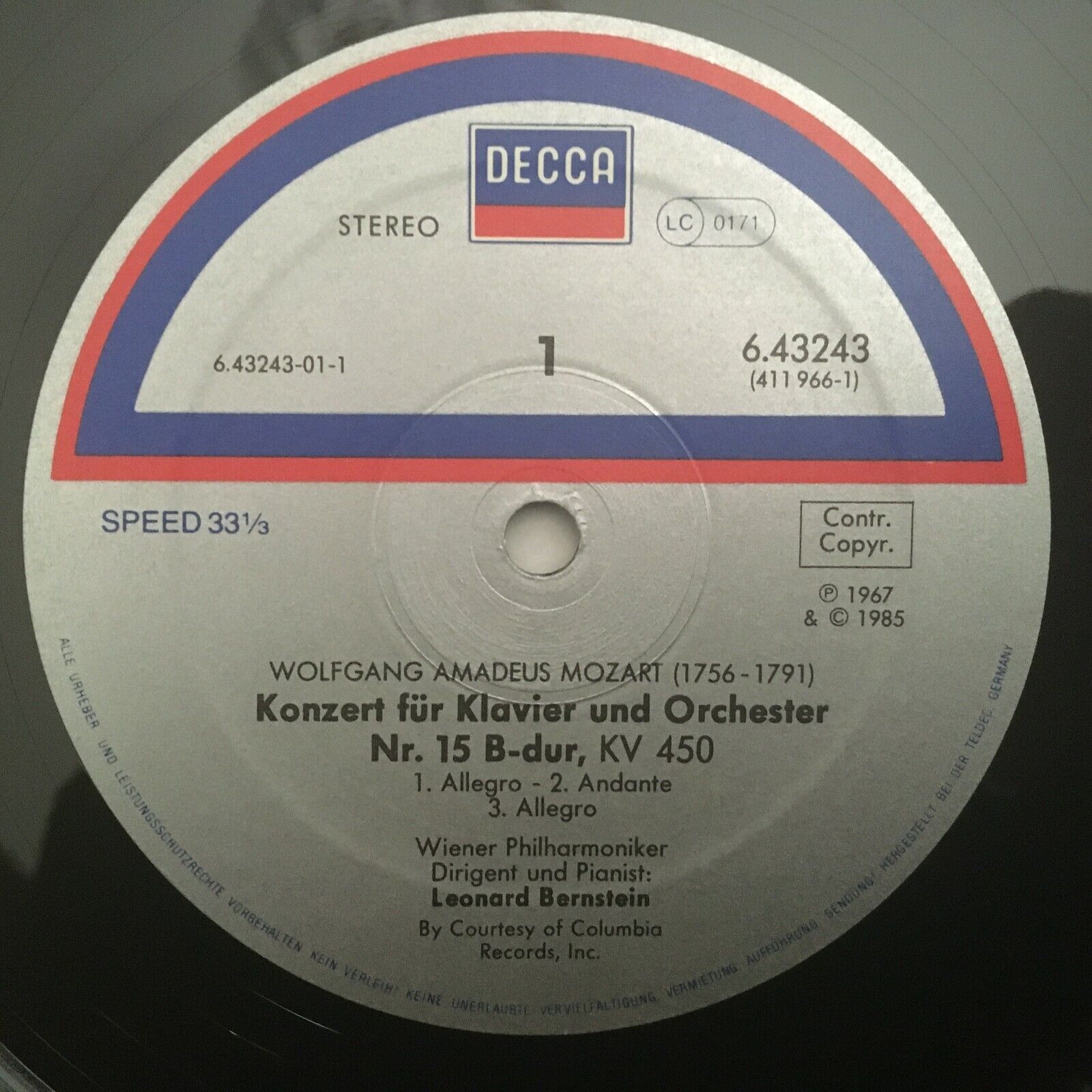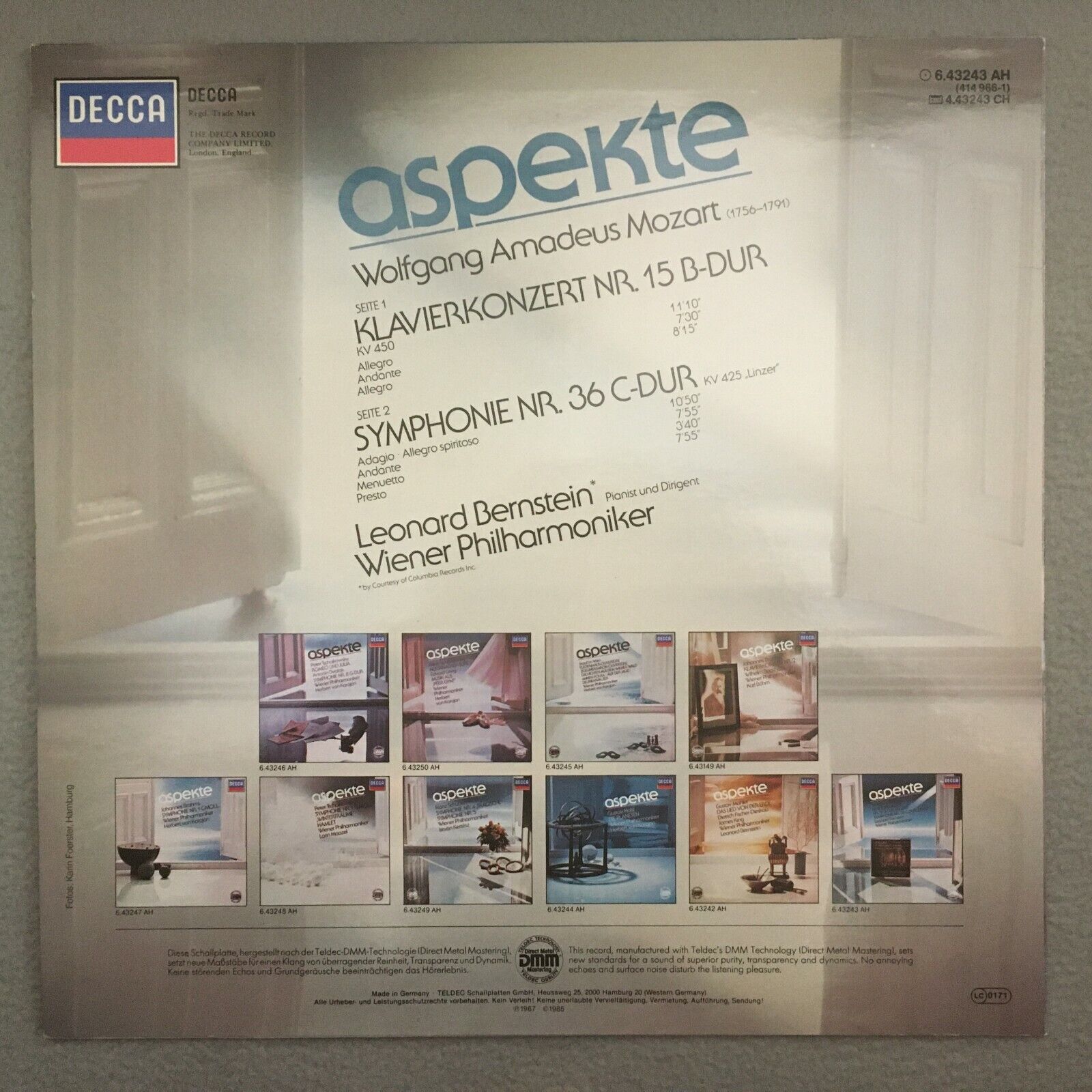 V552 Mozart Piano Concerto No.15 Symphony Bernstein VPO DECCA 6.432343 AH Stereo
