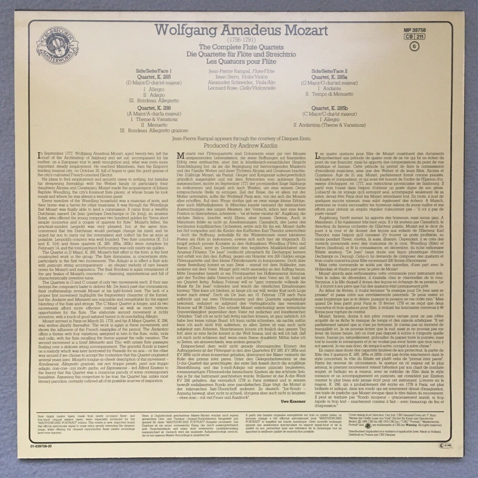 V553 Mozart Flute Quartets Rampal Stern Rose Schneider CBS MP 39758 Stereo