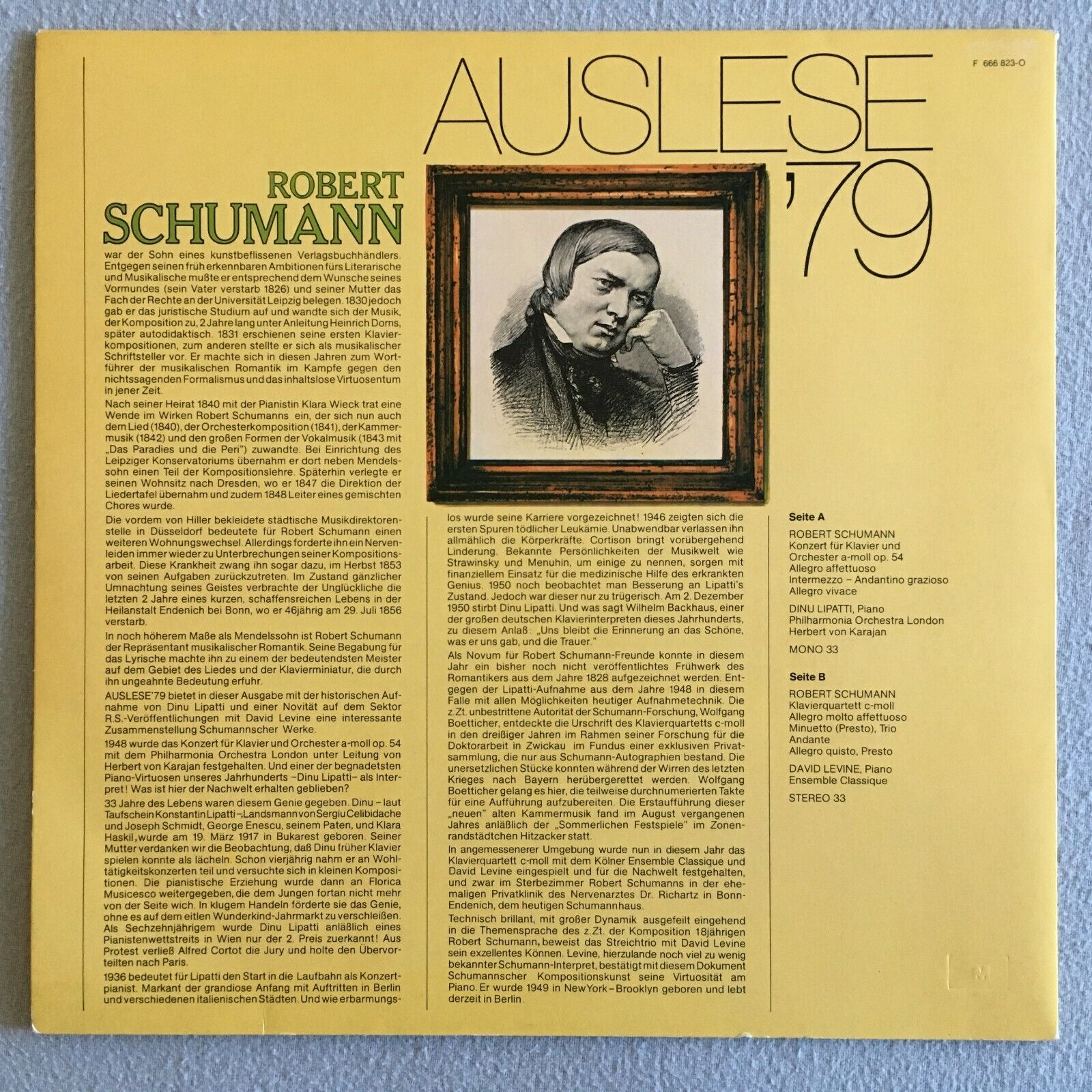 V004 Schumann Piano Concerto Lipatti Karajan Quartet Levine Private F 666 823-O