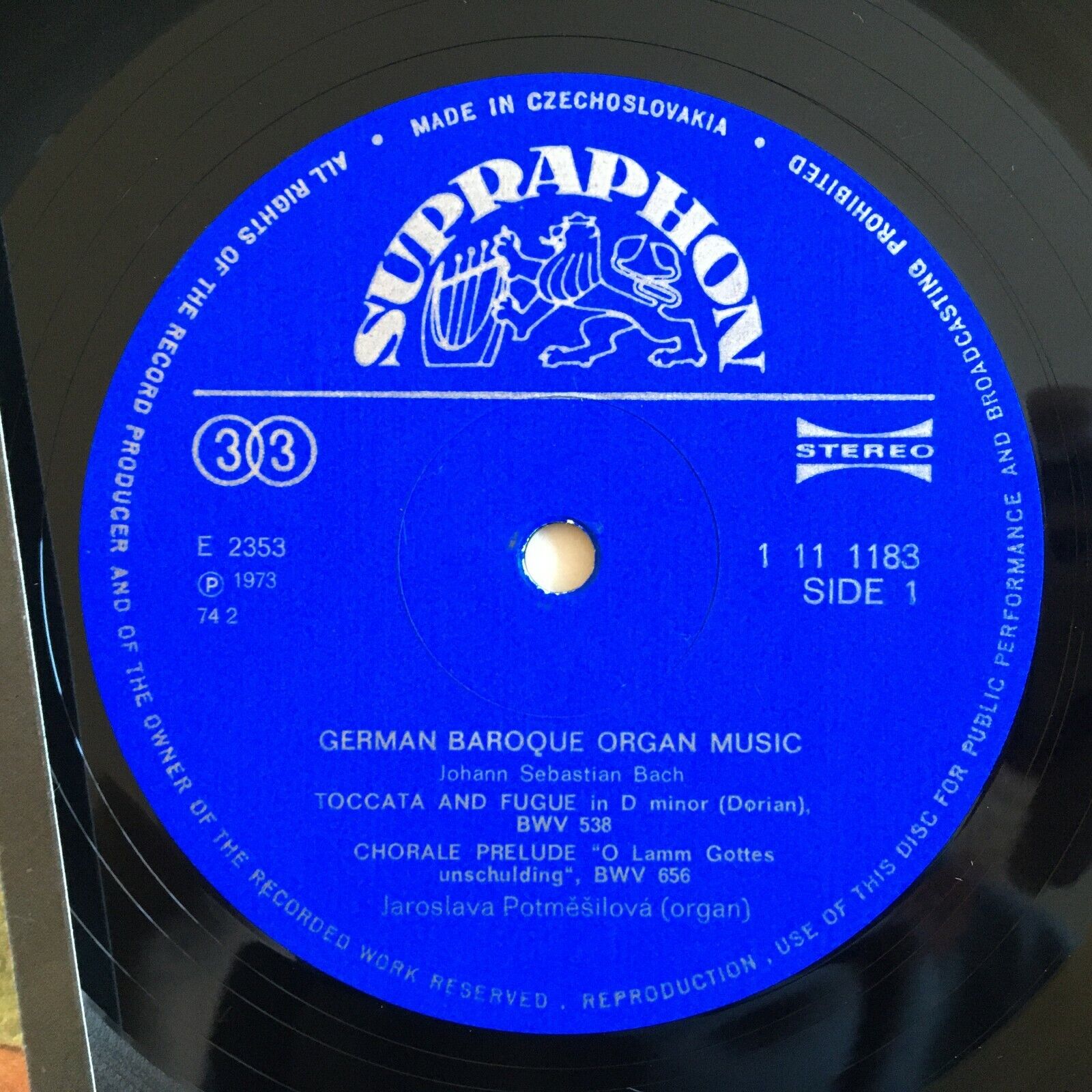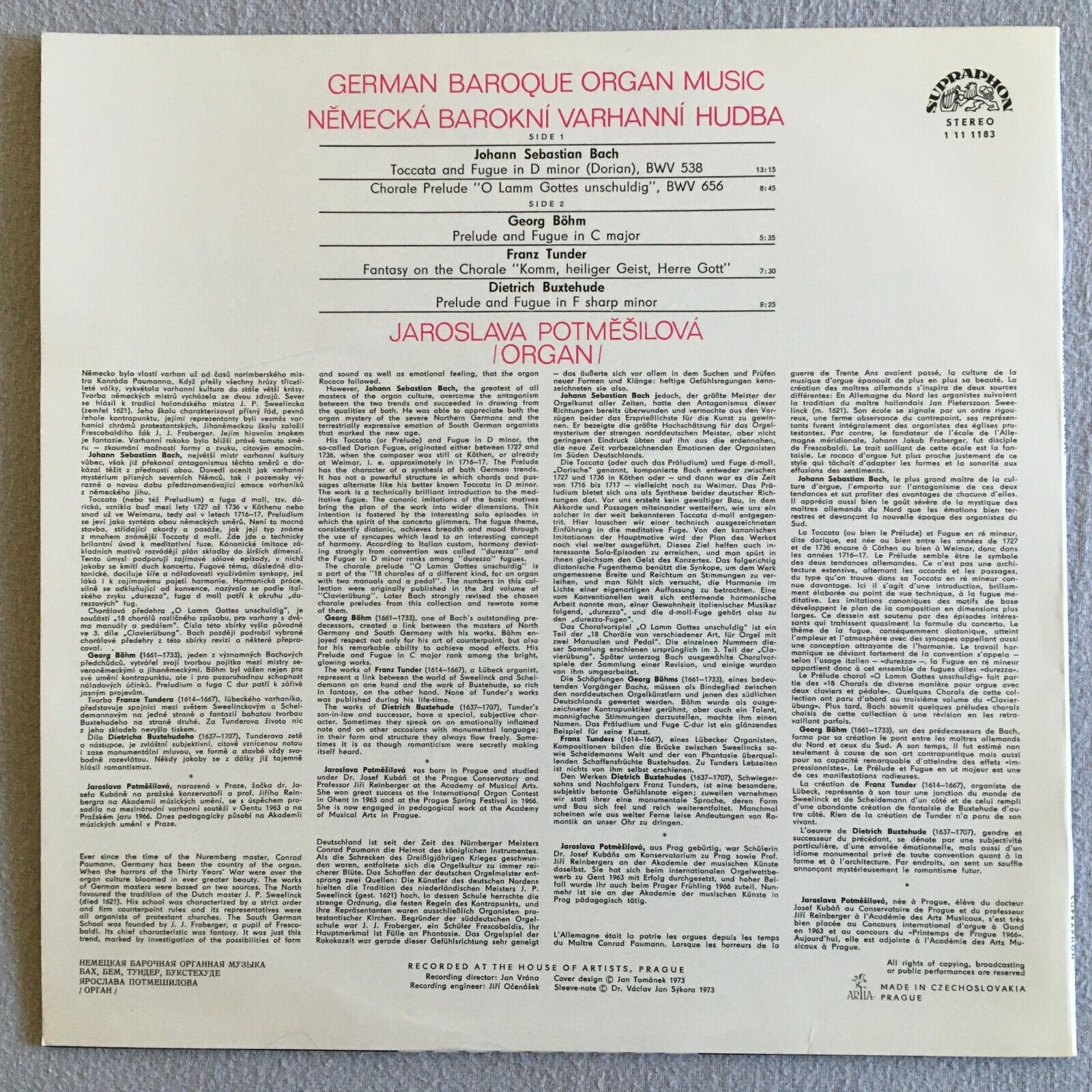 V006 German Baroque Organ Music Bach Bohm Potmesilova Supraphon 1 11 1183 Stereo