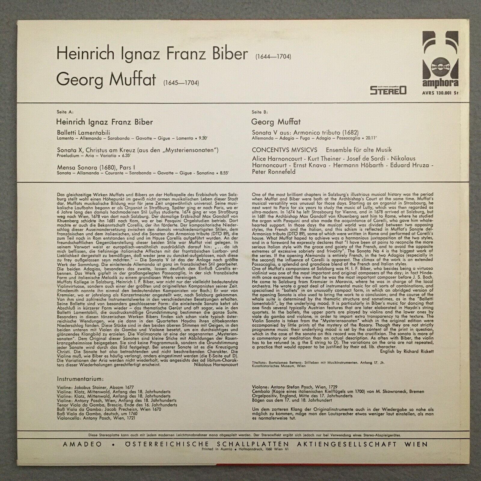 V107 Biber Muffat Sonatas A. & N. Harnoncourt Amadeo AVRS 130.001 Stereo
