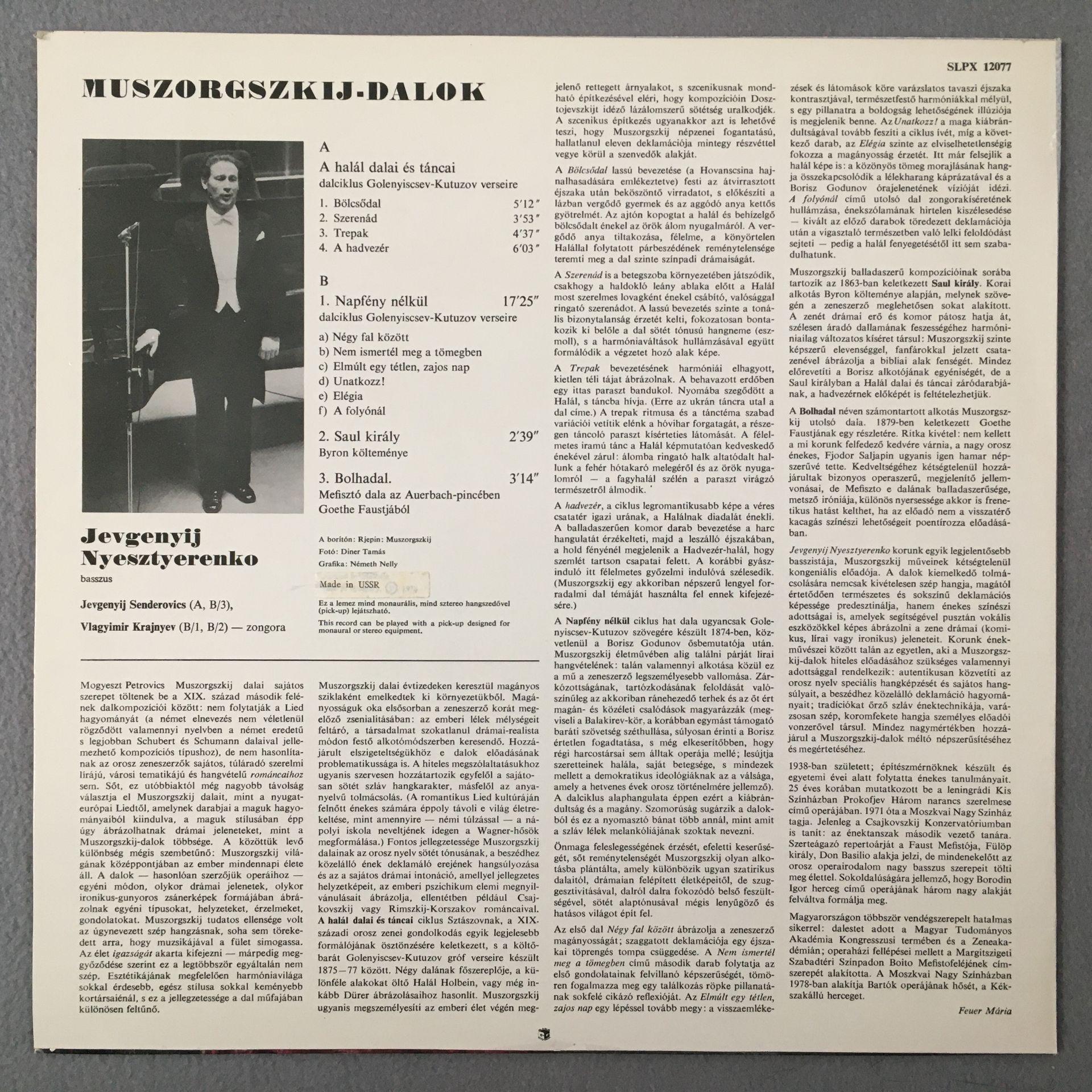 L819 Mussorgsky A halal dalai es tancai Nesterenko Hungaroton SLPX 12077 Stereo
