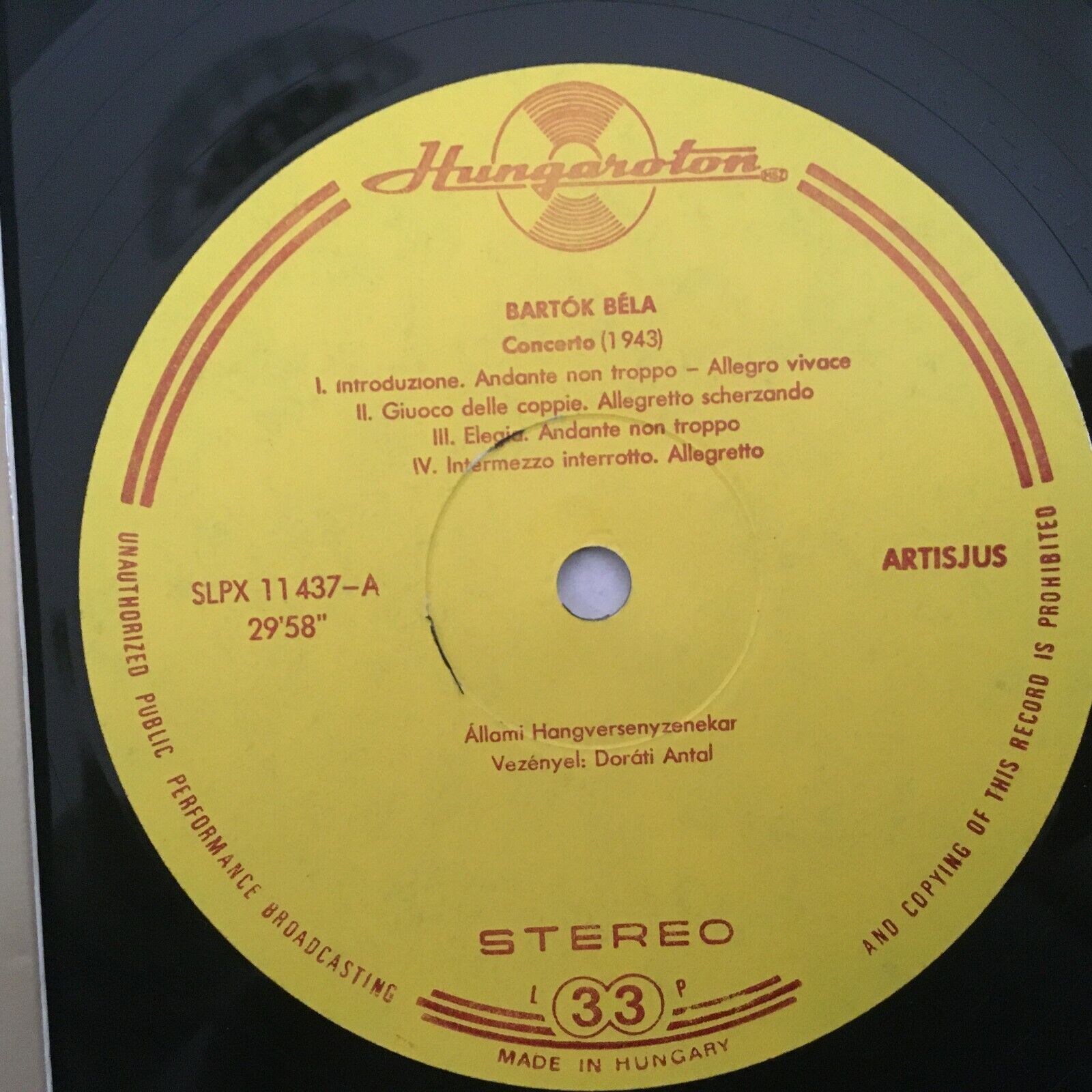 V186 Bartok Concerto Divertimento Dorati Hungaroton LPX 11437 Stereo