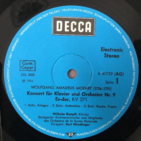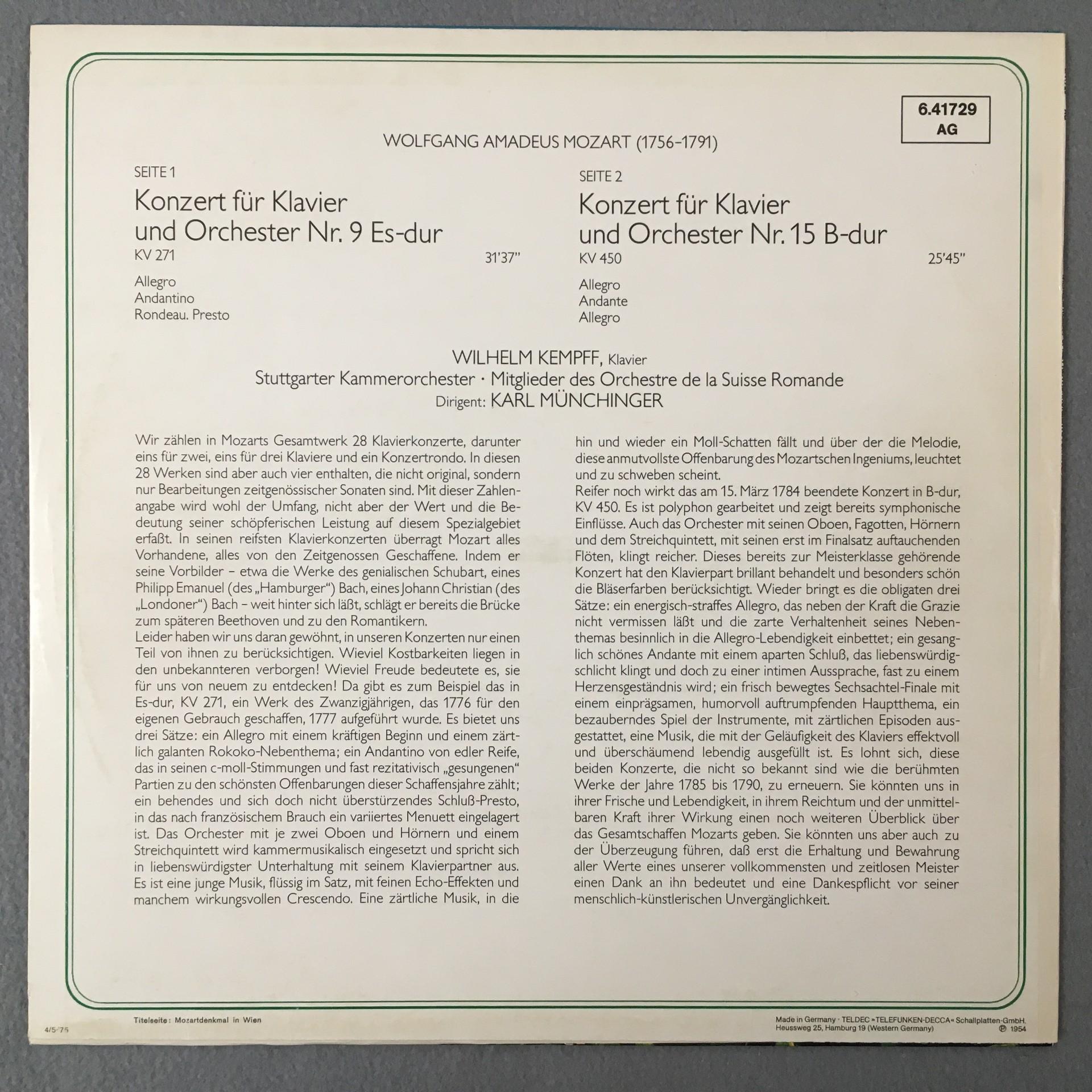 L828 Mozart Piano Concertos Kempff Munchinger DECCA 6.41729 AG Stereo