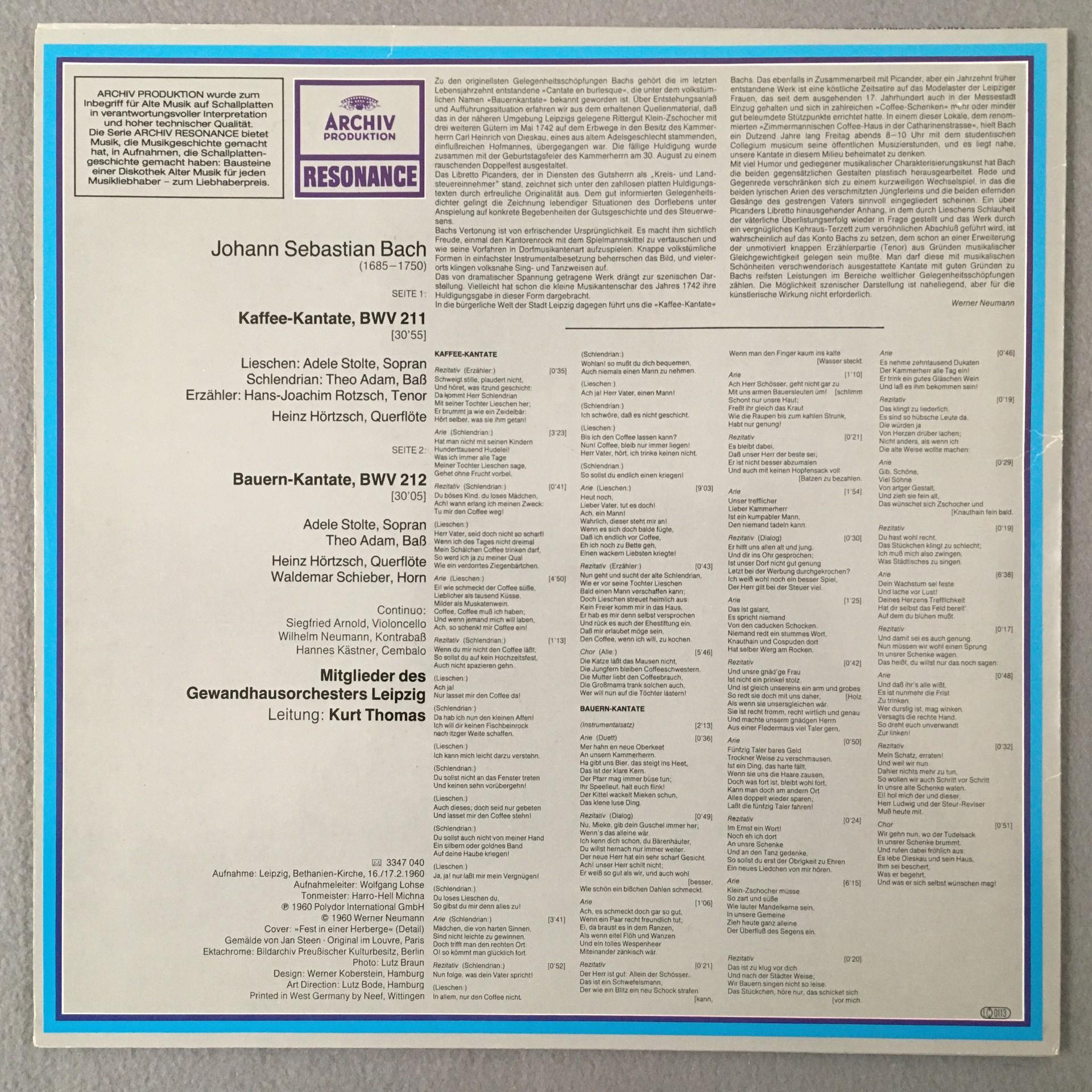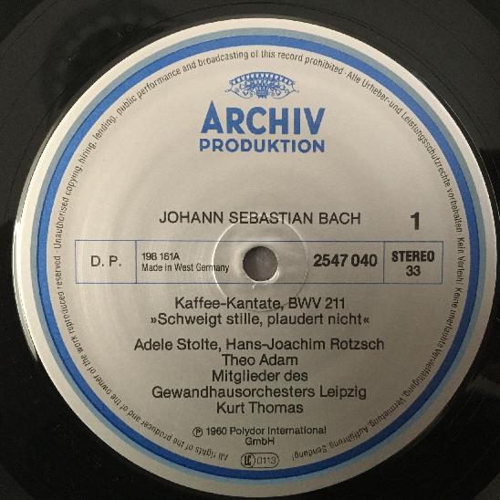 L829 Bach Cantatas Stolte Rotzsch Adam Thomas DGG Archiv 2547 040 Stereo