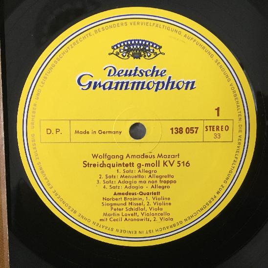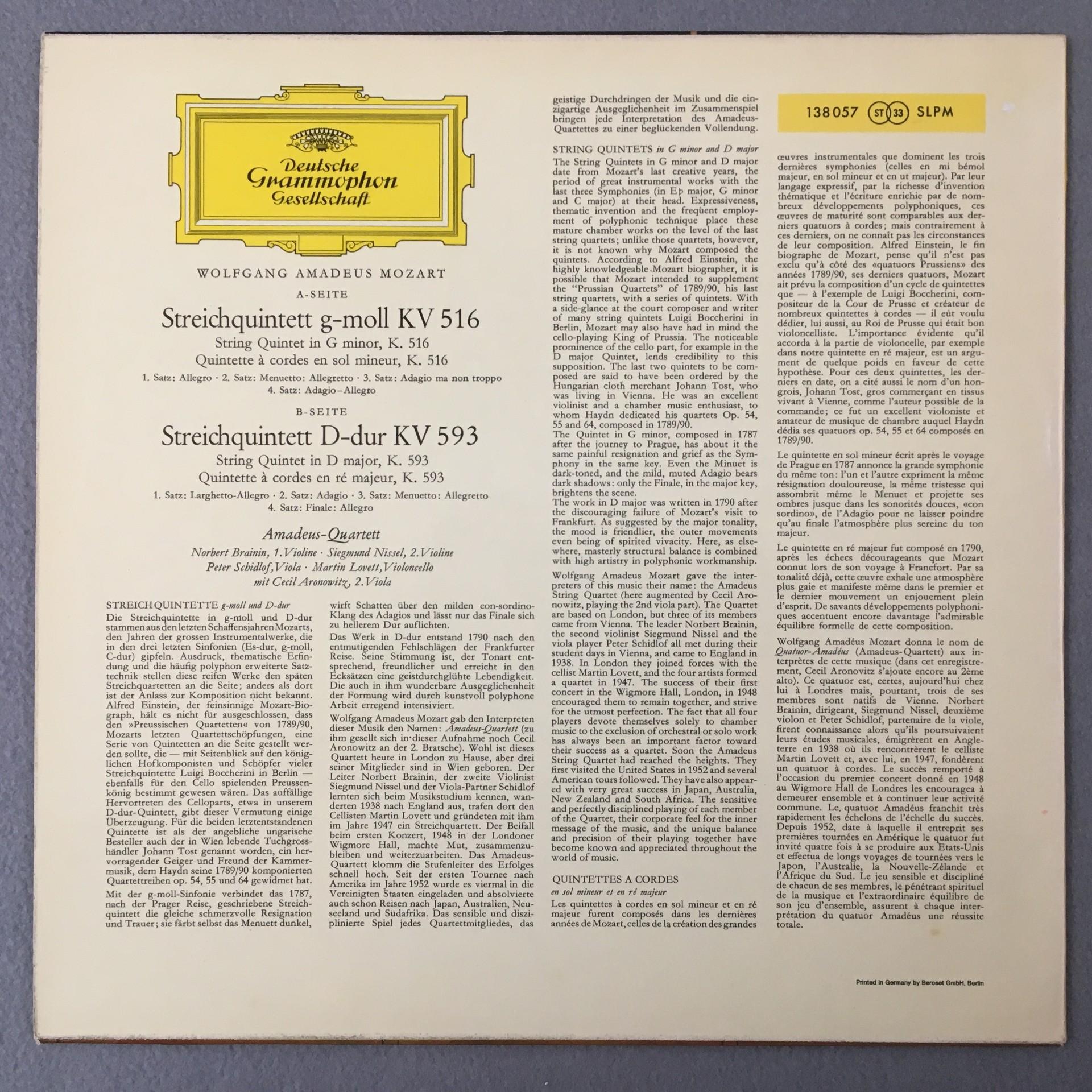 L835 Mozart String Quintets Aronowitz Amadeus Quartet DGG 138 057 SLPM Stereo