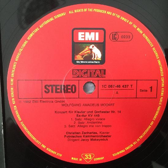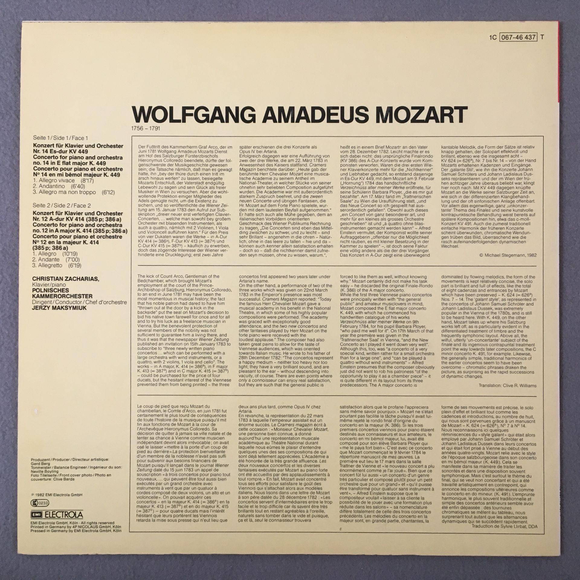 L836 Mozart Piano Concertos Zacharias Maksymiuk EMI 1C 067-46 437 T Digital Ster