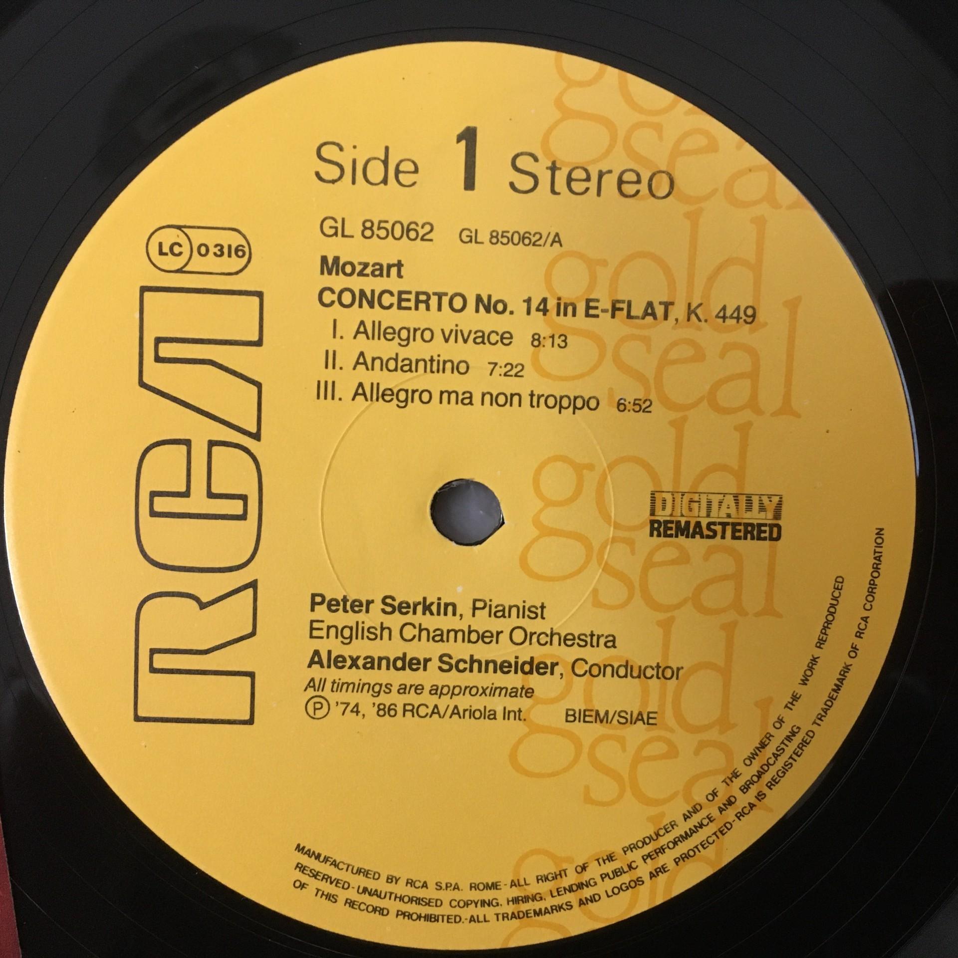 L850 Mozart Piano Concertos No.14 & 15 Serkin Schneider RCA GL 85062 Stereo