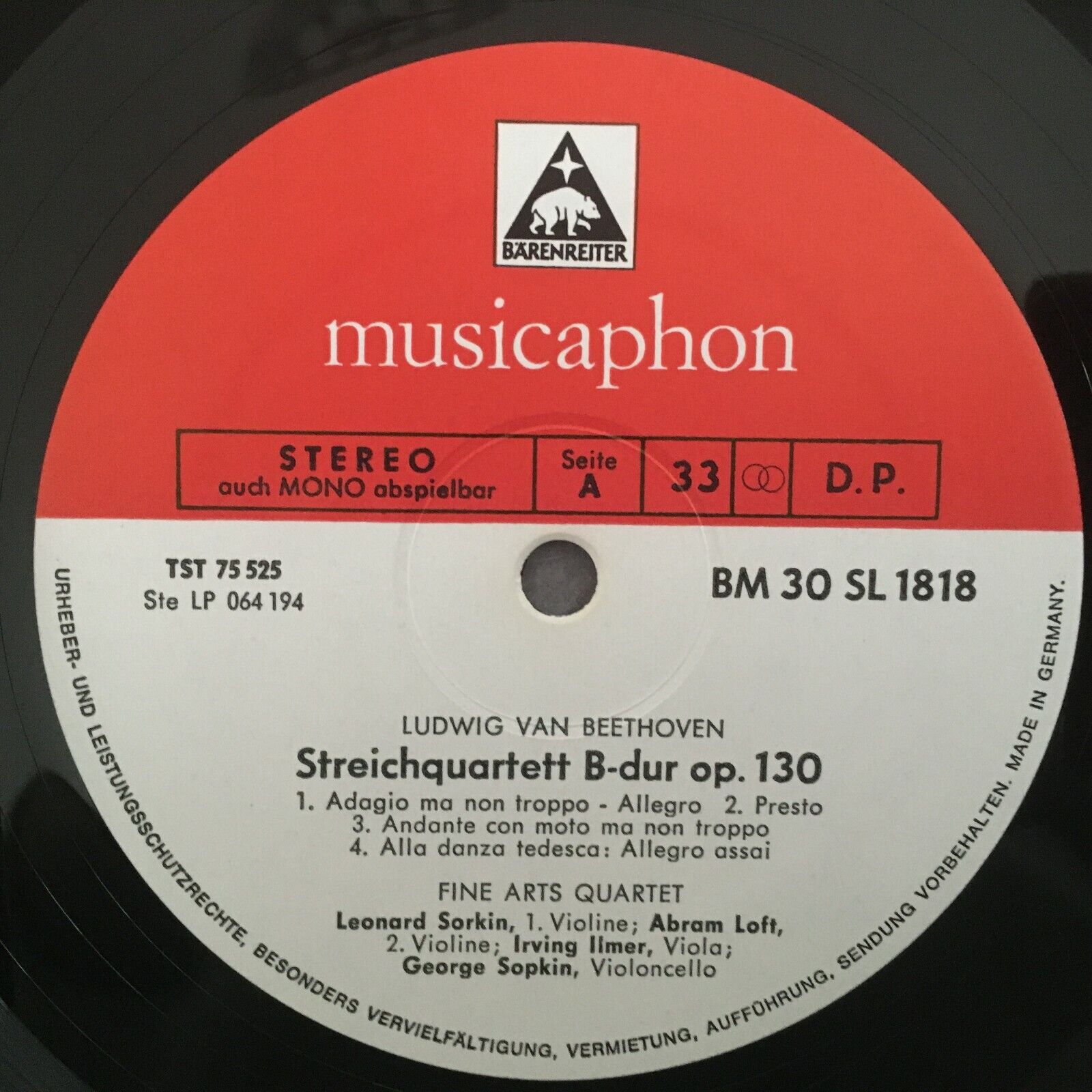 V200 Beethoven String Quartet Fine Arts Quartet Musicaphon BM 30 SL 1818 Stereo