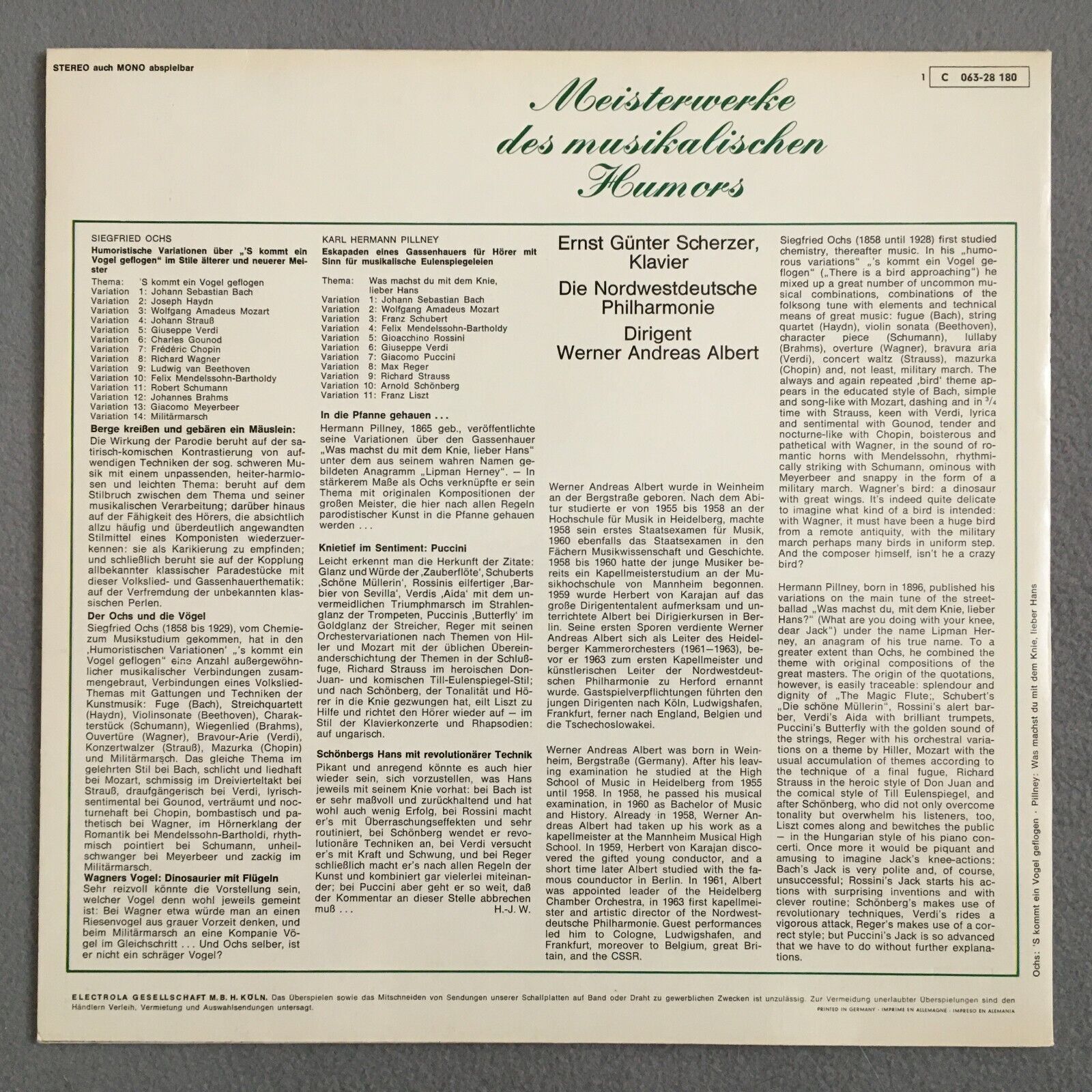 V216 Ochs Pillney Folk Songs Scherzer Piano Albert EMI 1 C 063-28 180 Stereo