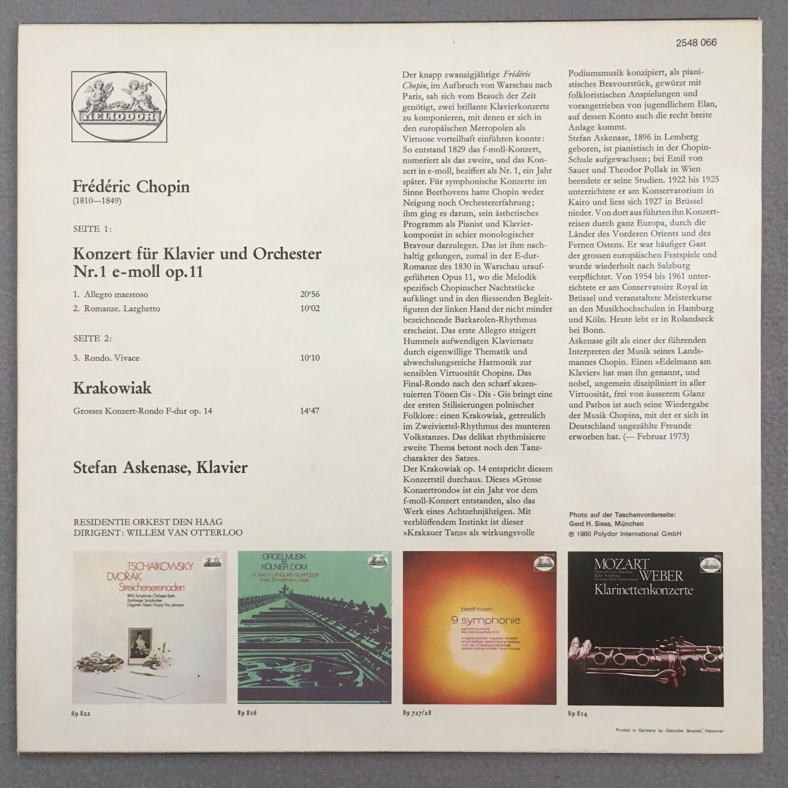 V229 Chopin Piano Concerto No.1 Askenase Van Otterloo Heliodor 2548 066 Stereo