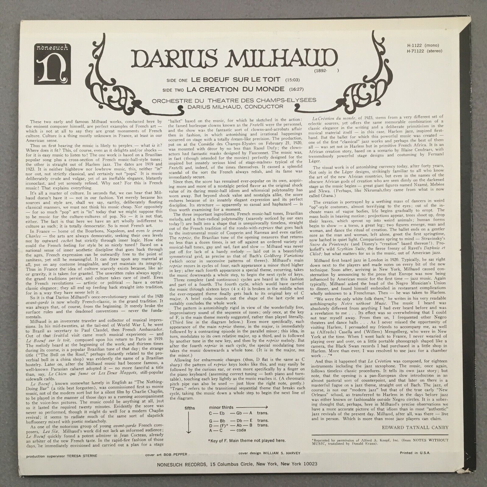 V233 Milhaud Le Boeuf Sur Le Toit La Creation Du Monde Nonesuch H-71122 Stereo