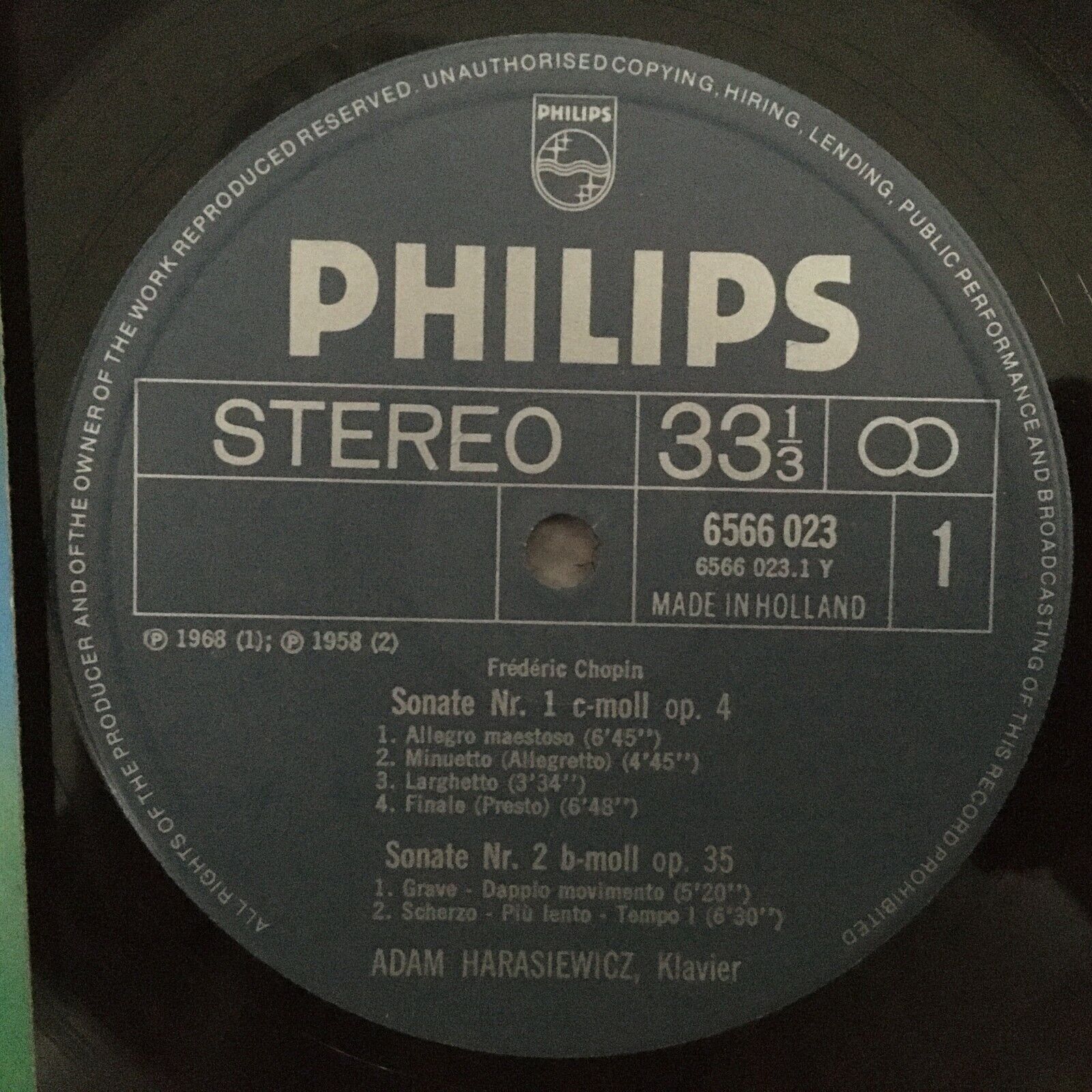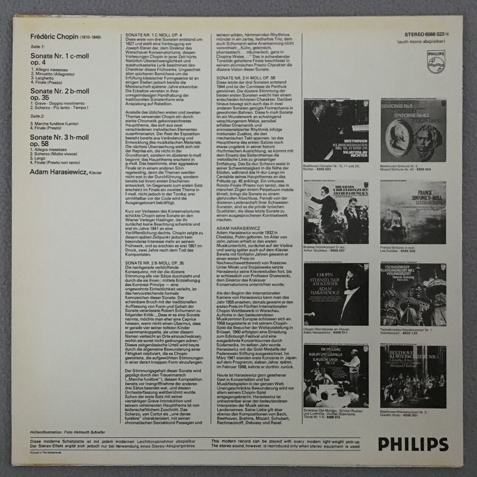 V257 Chopin The Sonatas No.1 & 2 & 3 Harasiewicz Piano Philips 6566 023 Stereo