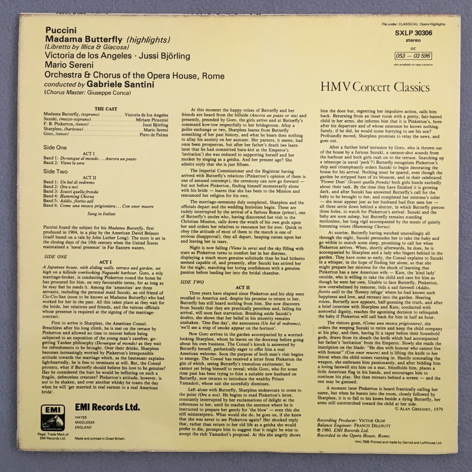 V298 Puccini Madame Butterfly de los Angeles Santini EMI SXLP 30306 Stereo