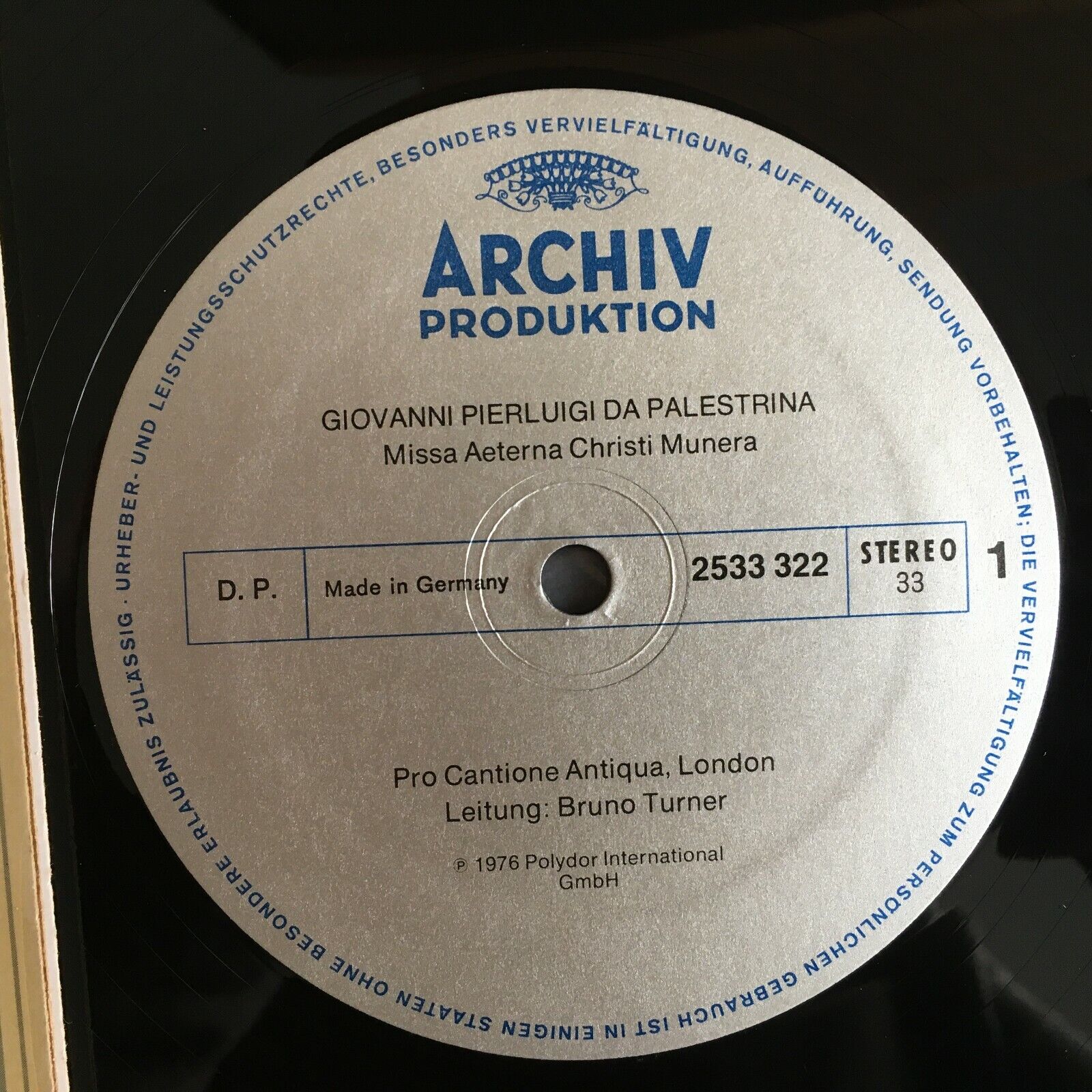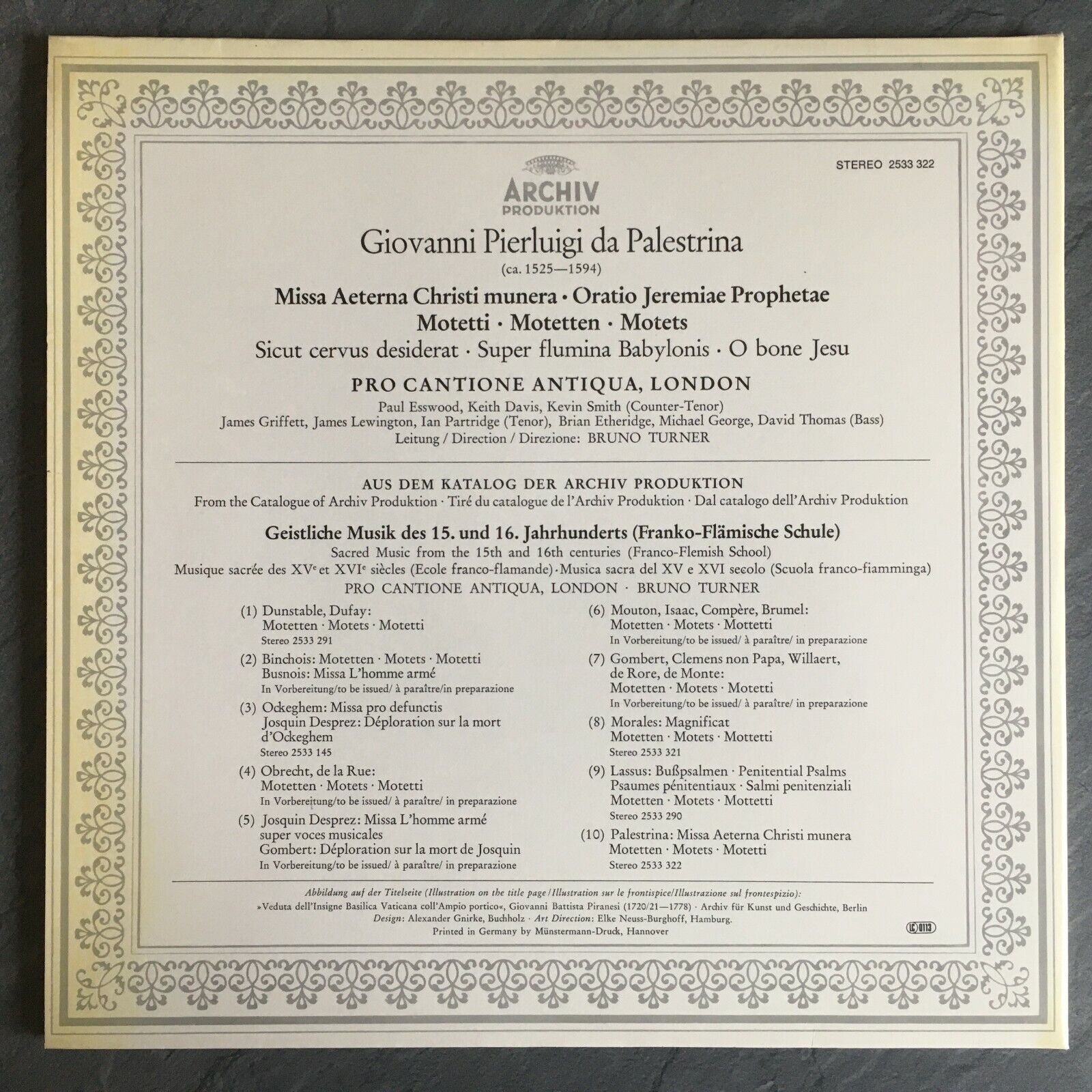 V302 Palestrina Missa Aeterna Motets Esswood Turner DGG Archiv 2533 322 Stereo