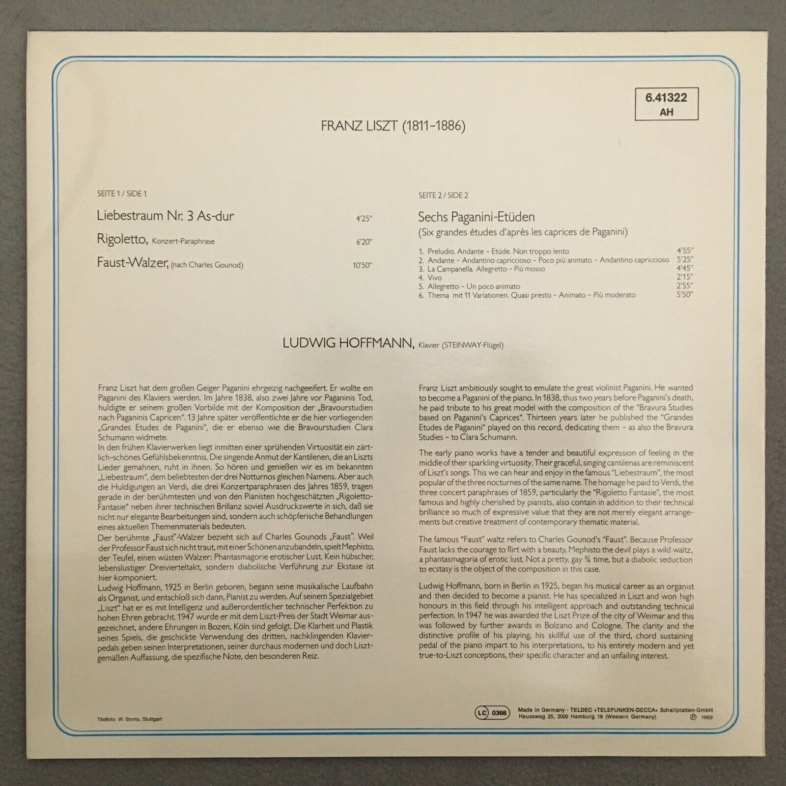 S962 Liszt Liebestraum Paganini Etudes Hoffmann Telefunken 6.41322 AH Stereo