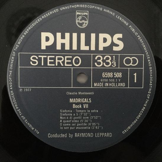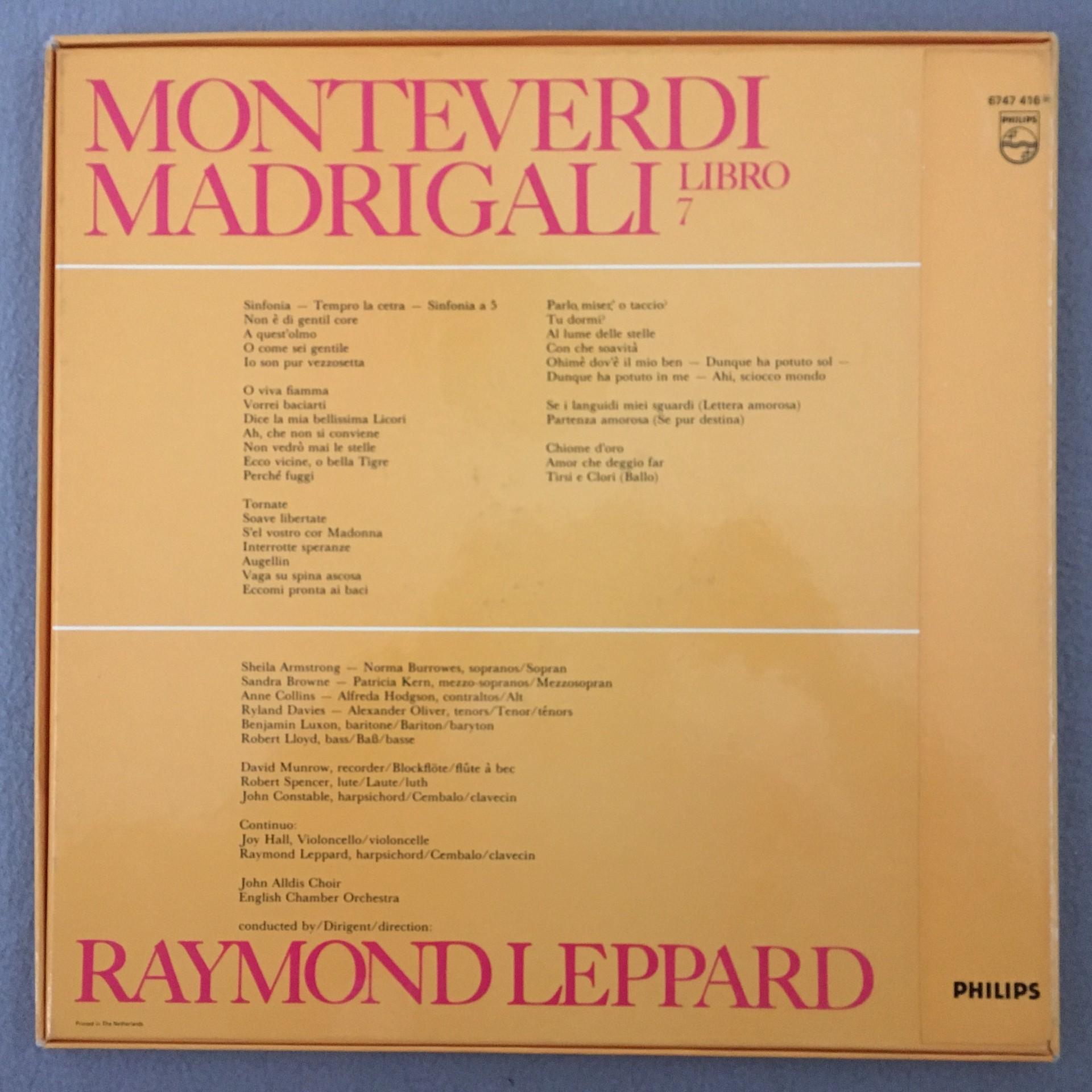 D101 Monteverdi Madrigali Libro 7 Leppard 3LP Philips 6747 416 Stereo