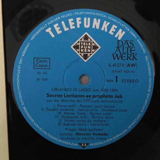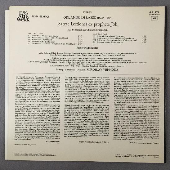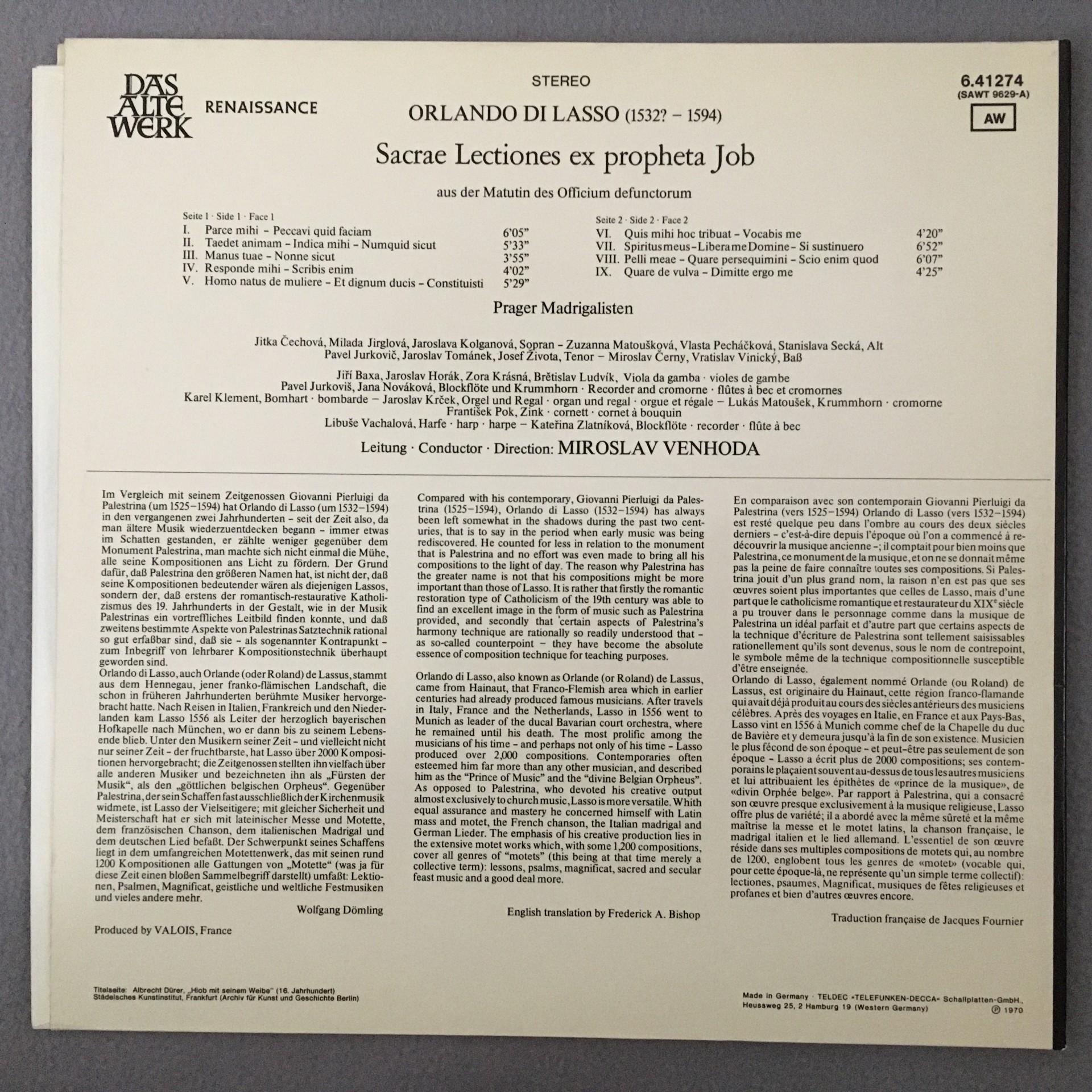 L859 Di Lasso Sacrae Lectiones ex Propheta Job Venhoda Telefunken 6.41274 AW Ste