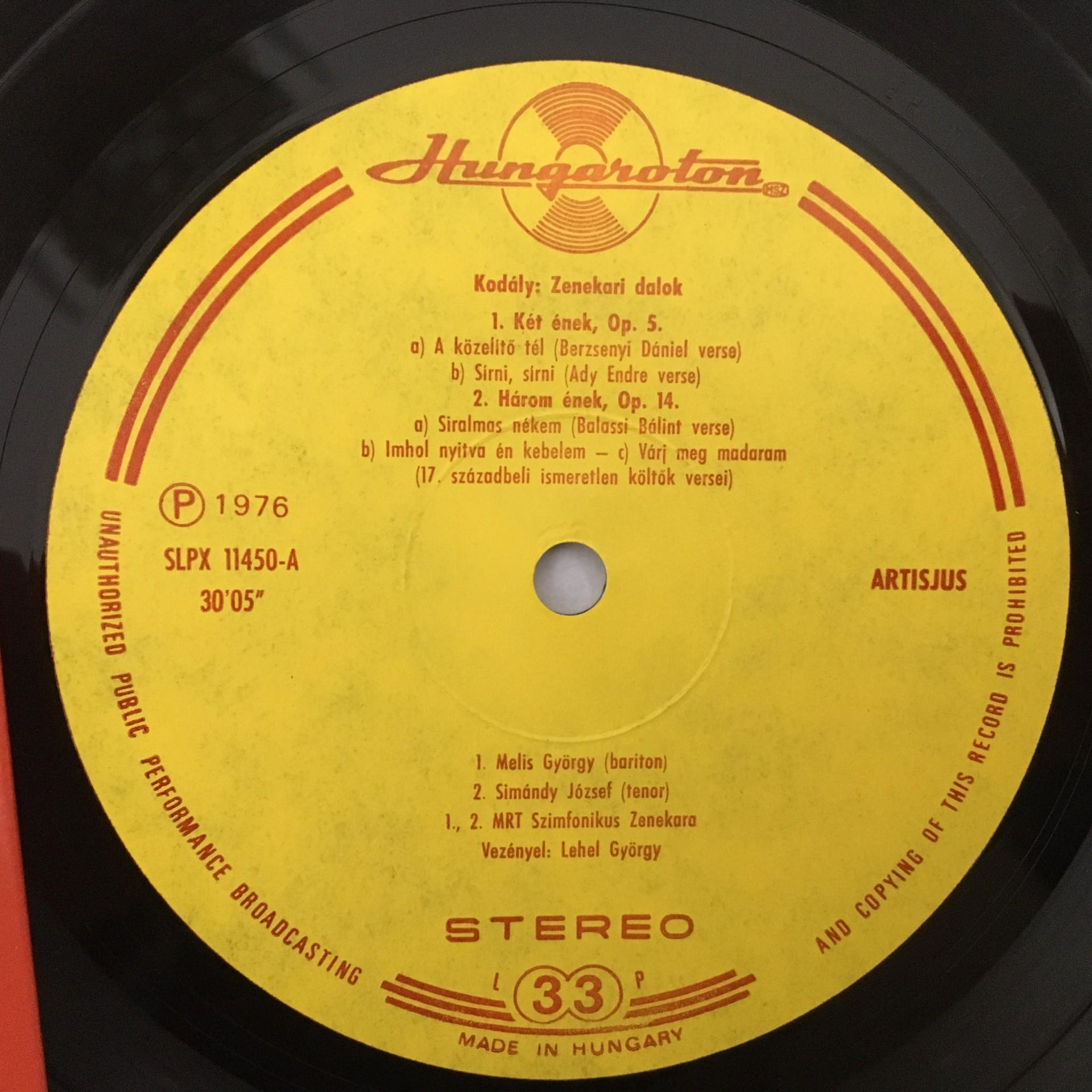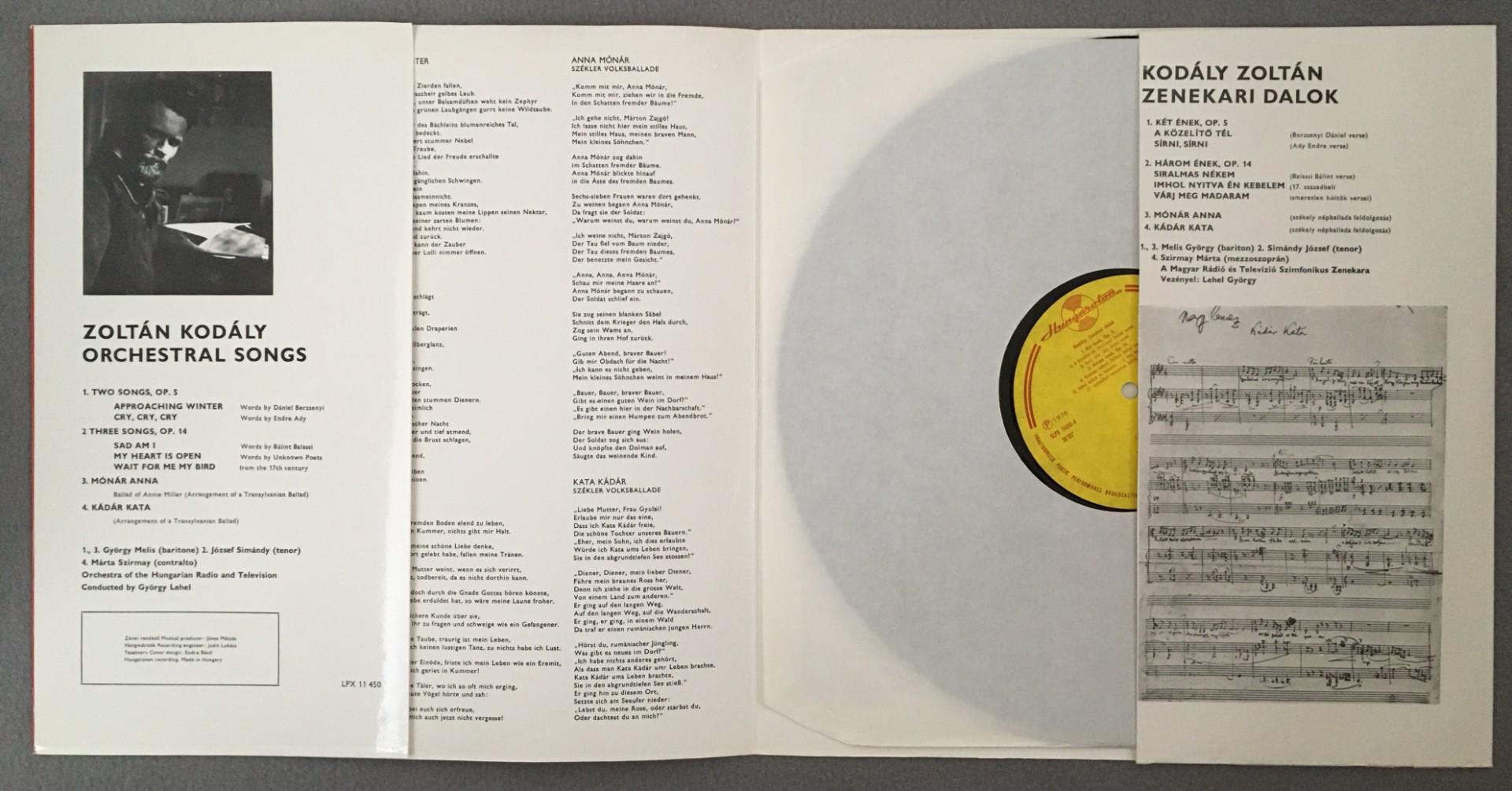 L873 Kodaly Orchestral Songs Melis Lehel Hungaroton LPX 11450 Stereo